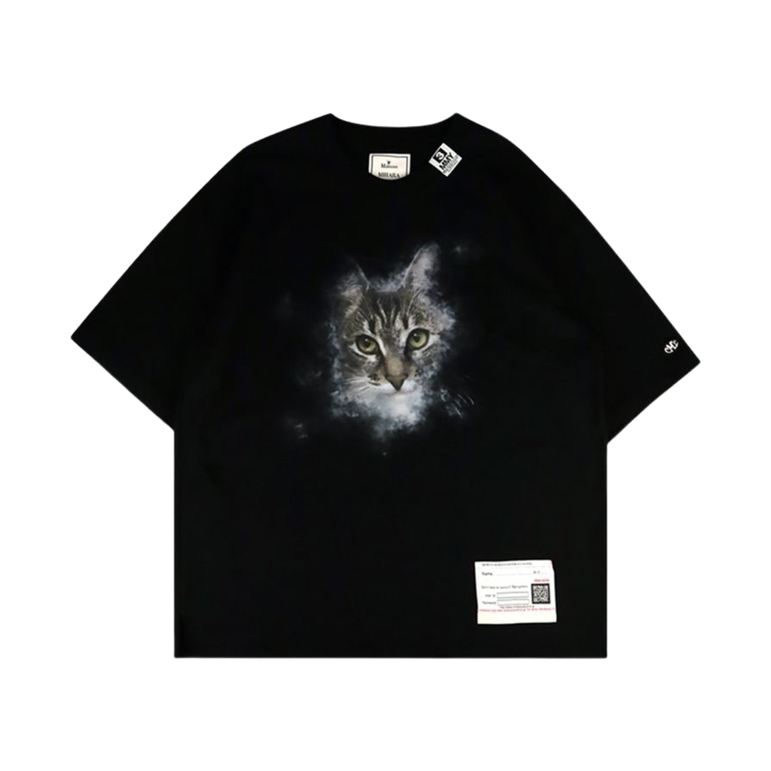 메종 미하라 야스히로 캣 프린티드 티셔츠 블랙