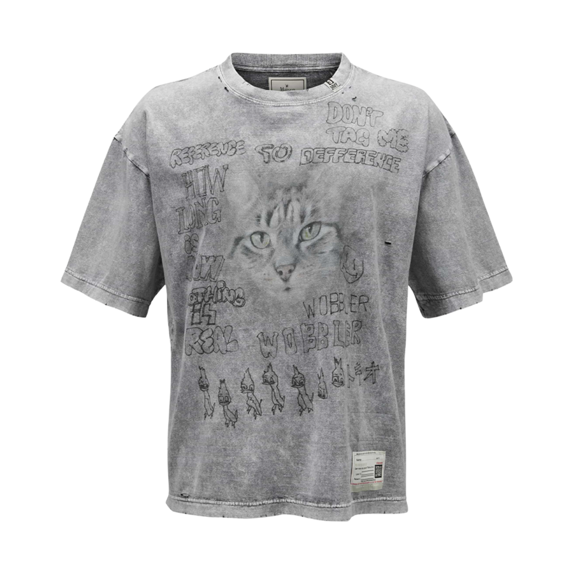(W) 메종 미하라 야스히로 캣 프린트 엠벨리시드 디스트레스드 티셔츠 그레이