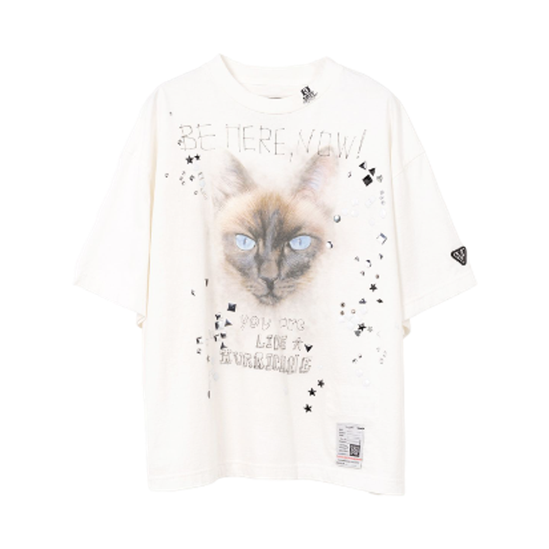 (W) 메종 미하라 야스히로 캣 프린트 엠벨리시드 디스트레스드 티셔츠 화이트