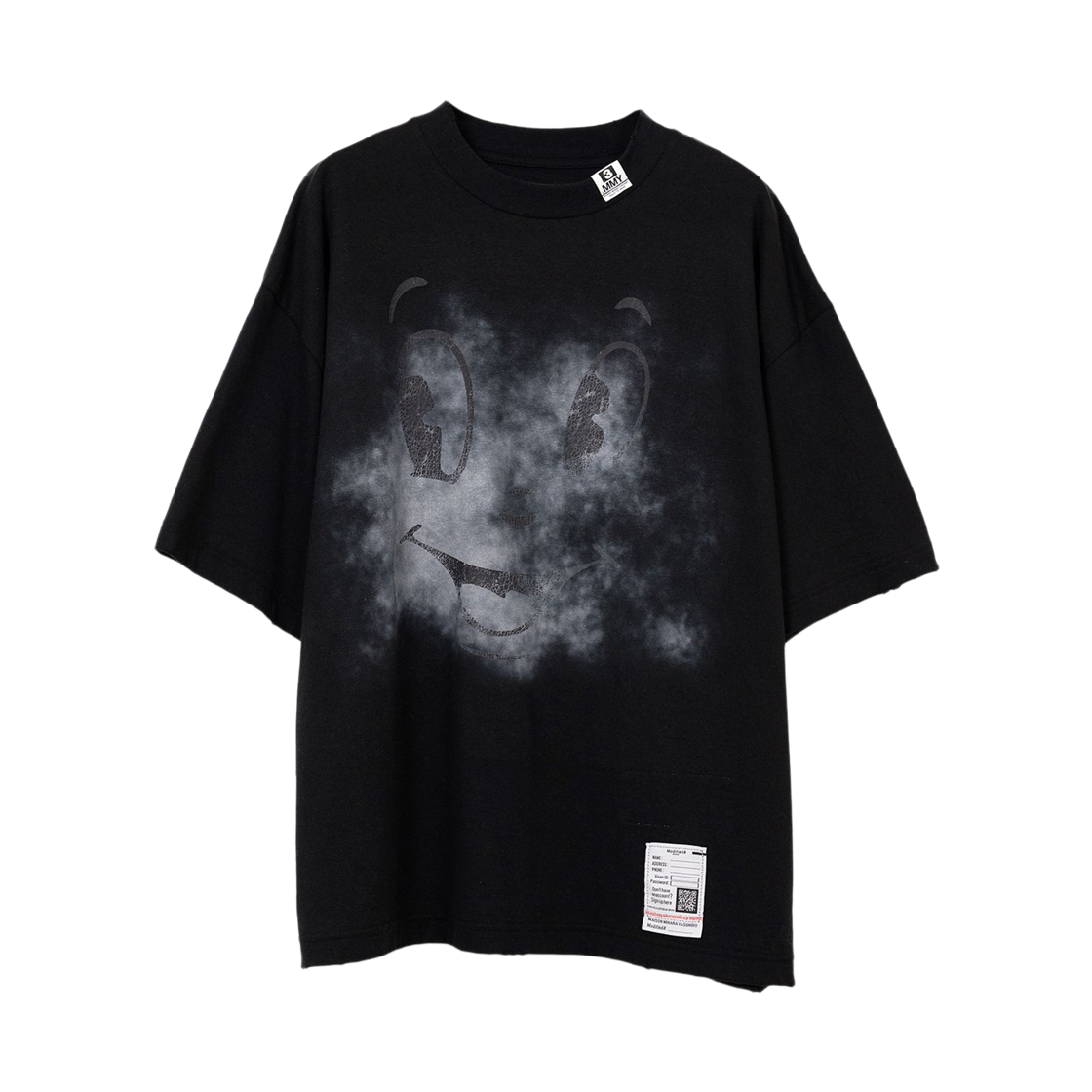 (W) 메종 미하라 야스히로 해피 페이스 프린트 디스트레스드 티셔츠 블랙