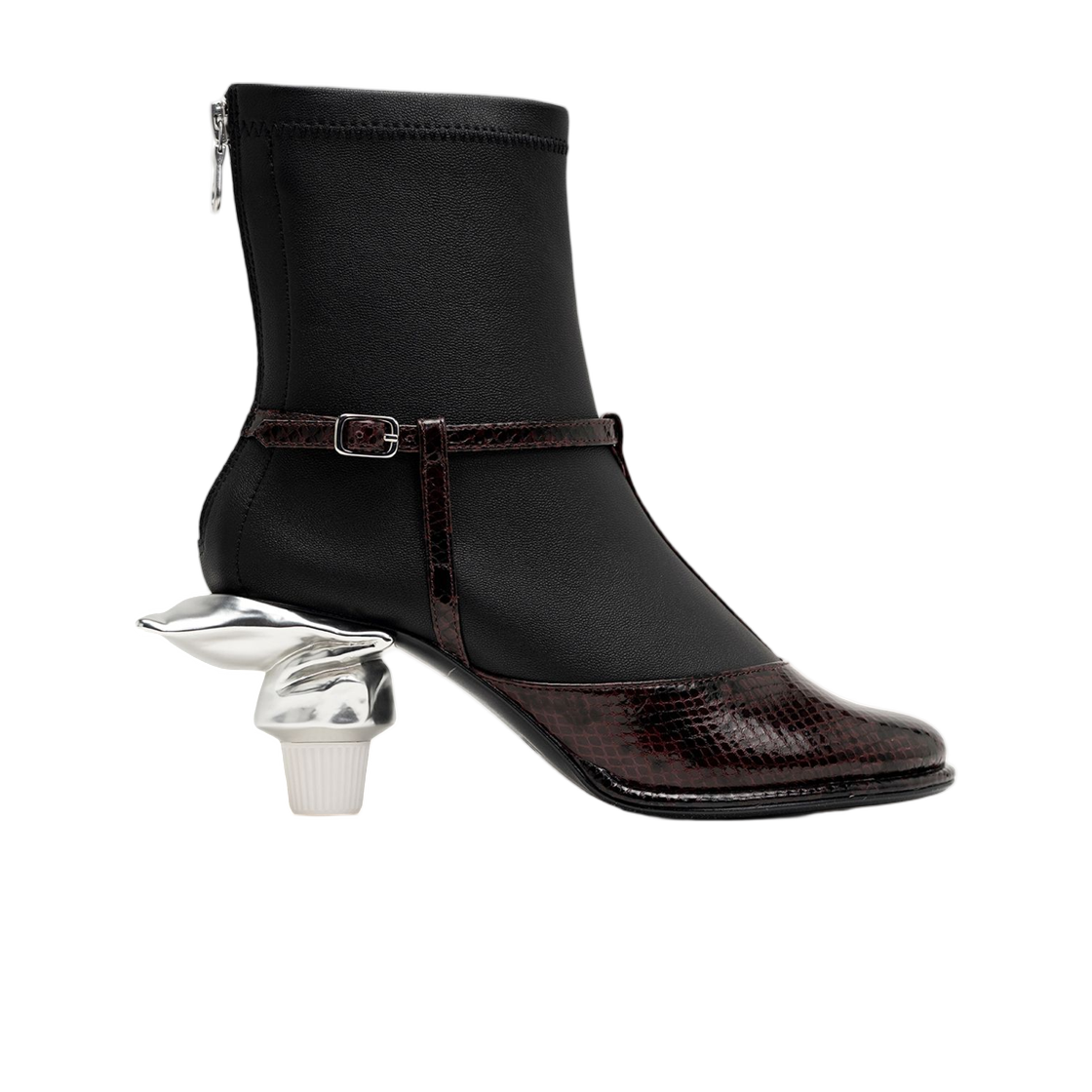 (W) 메종 미하라 야스히로 투스페이스트 힐 파이톤 프린티드 스트랩 부츠 보르도