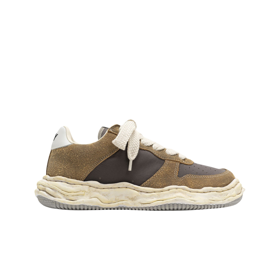 메종 미하라 야스히로 웨인 OG 솔 디스트레스 캔버스 로우탑 스니커즈 브라운