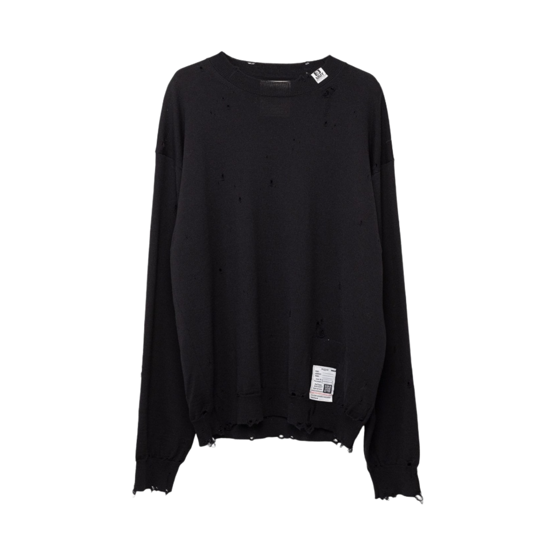메종 미하라 야스히로 디스트레스드 풀오버 니트 블랙