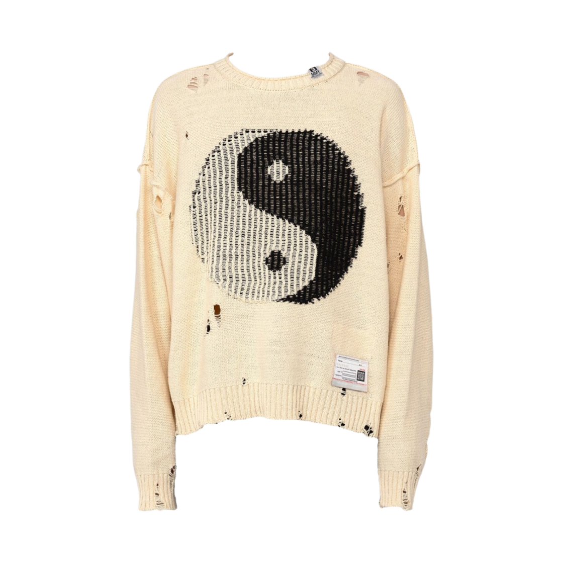 메종 미하라 야스히로 디스트레스 니트 스웨터 화이트