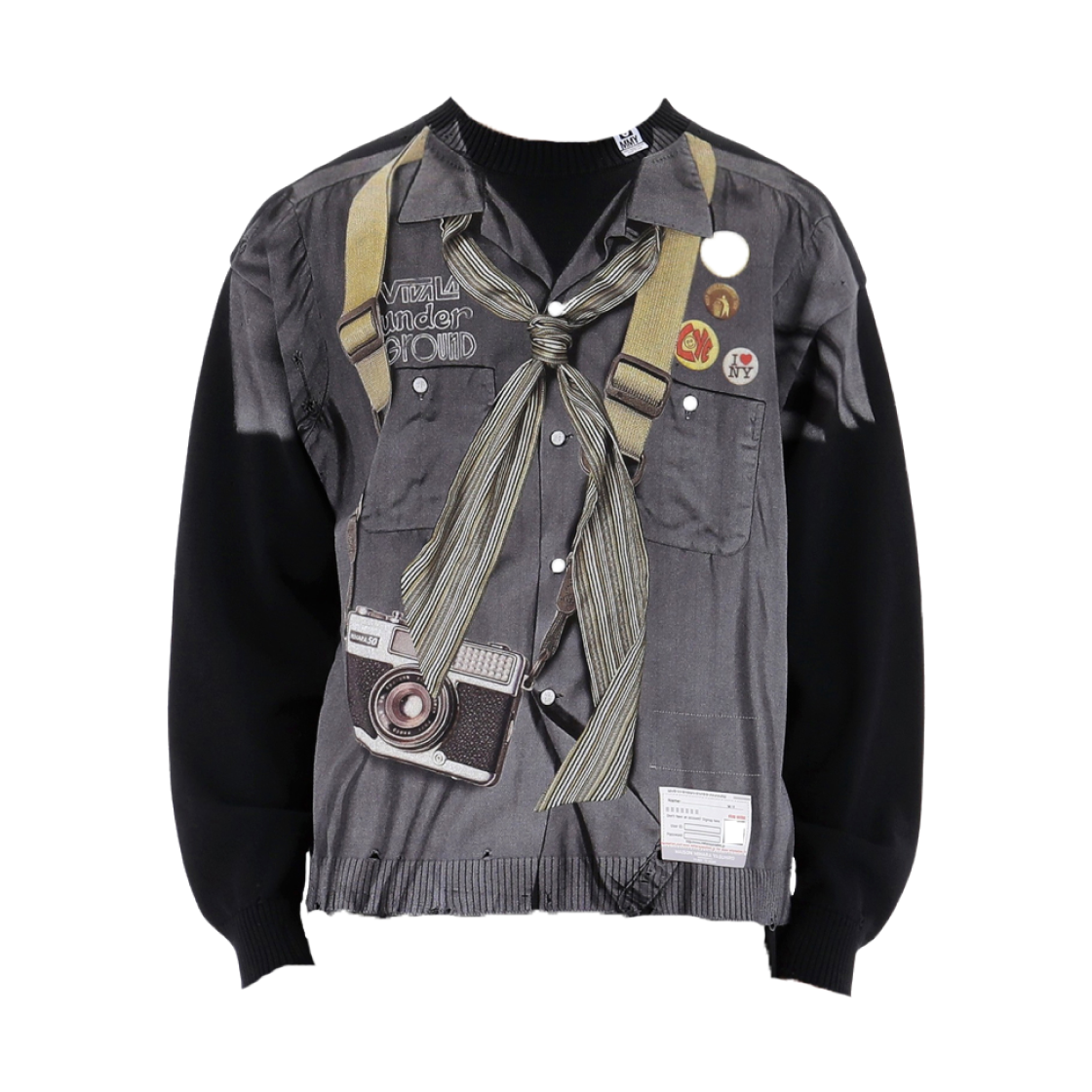 메종 미하라 야스히로 그래픽 프린트 니트 블랙