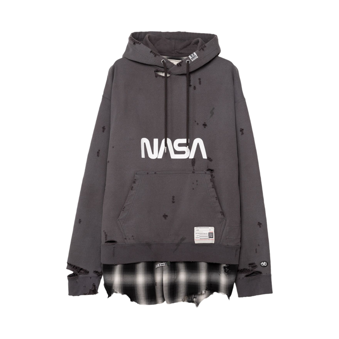 메종 미하라 야스히로 체크 후드 셔츠 그레이