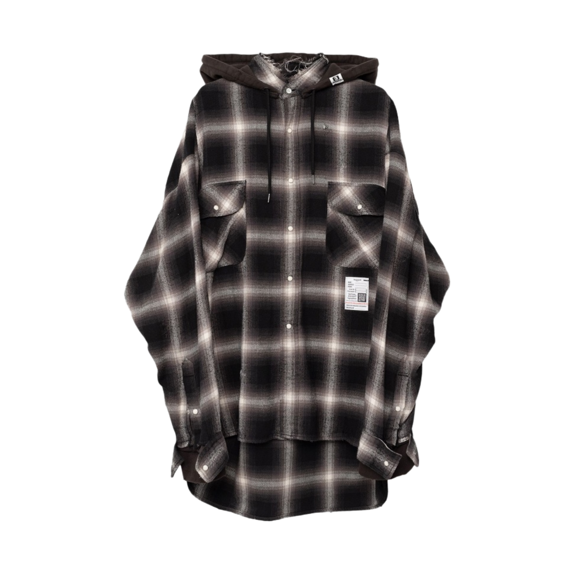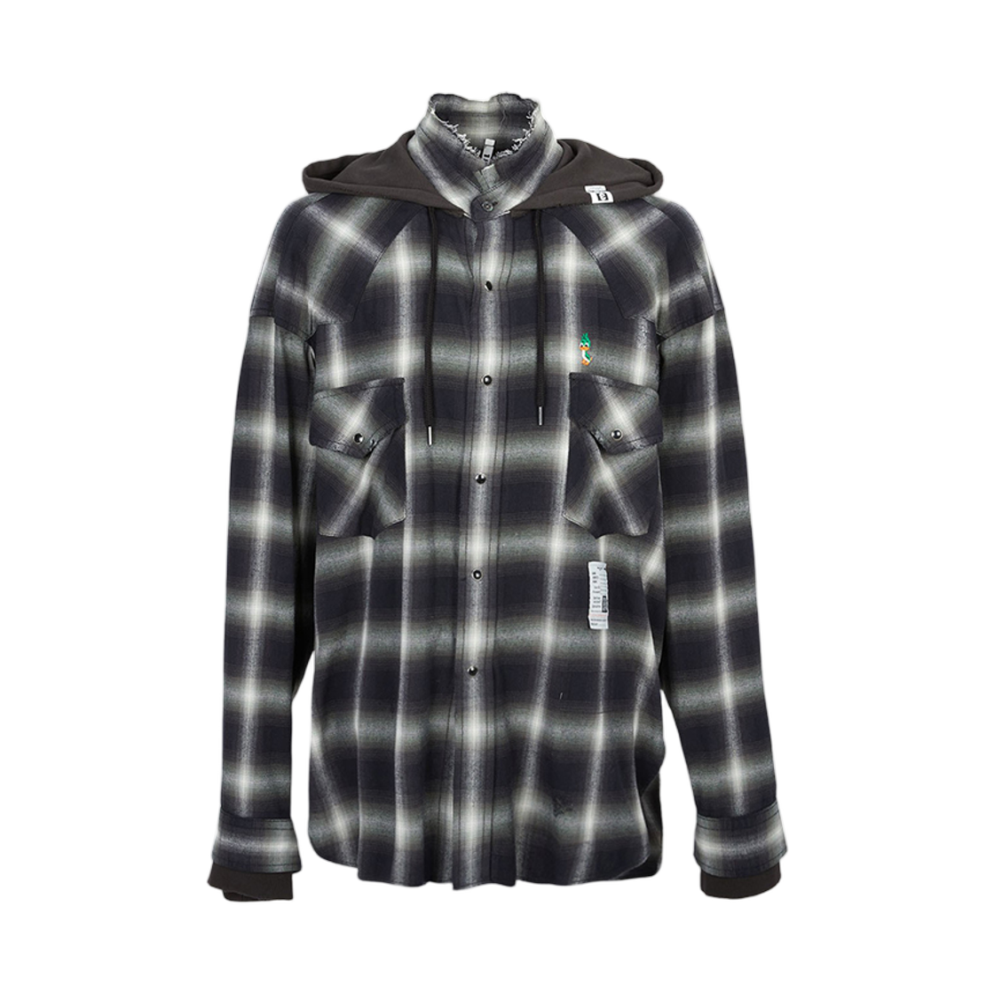 메종 미하라 야스히로 후드 컴바인 체크 셔츠 블랙