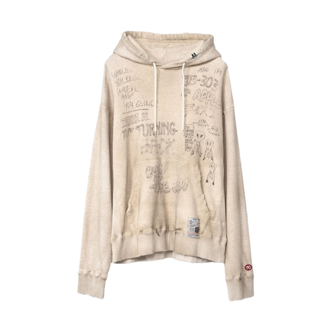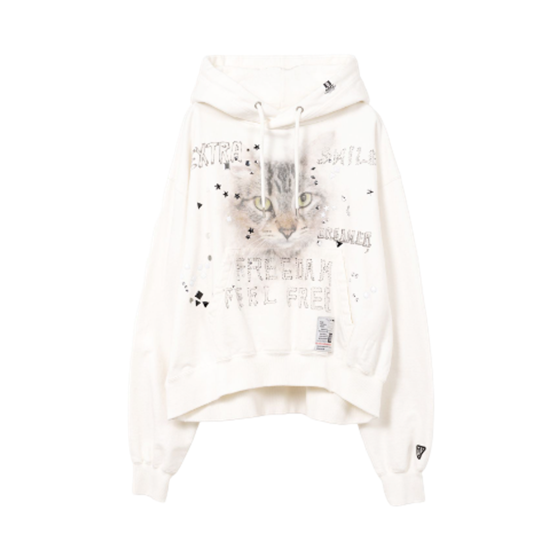 (W) 메종 미하라 야스히로 캣 프린트 엠벨리시드 디스트레스드 후드 화이트