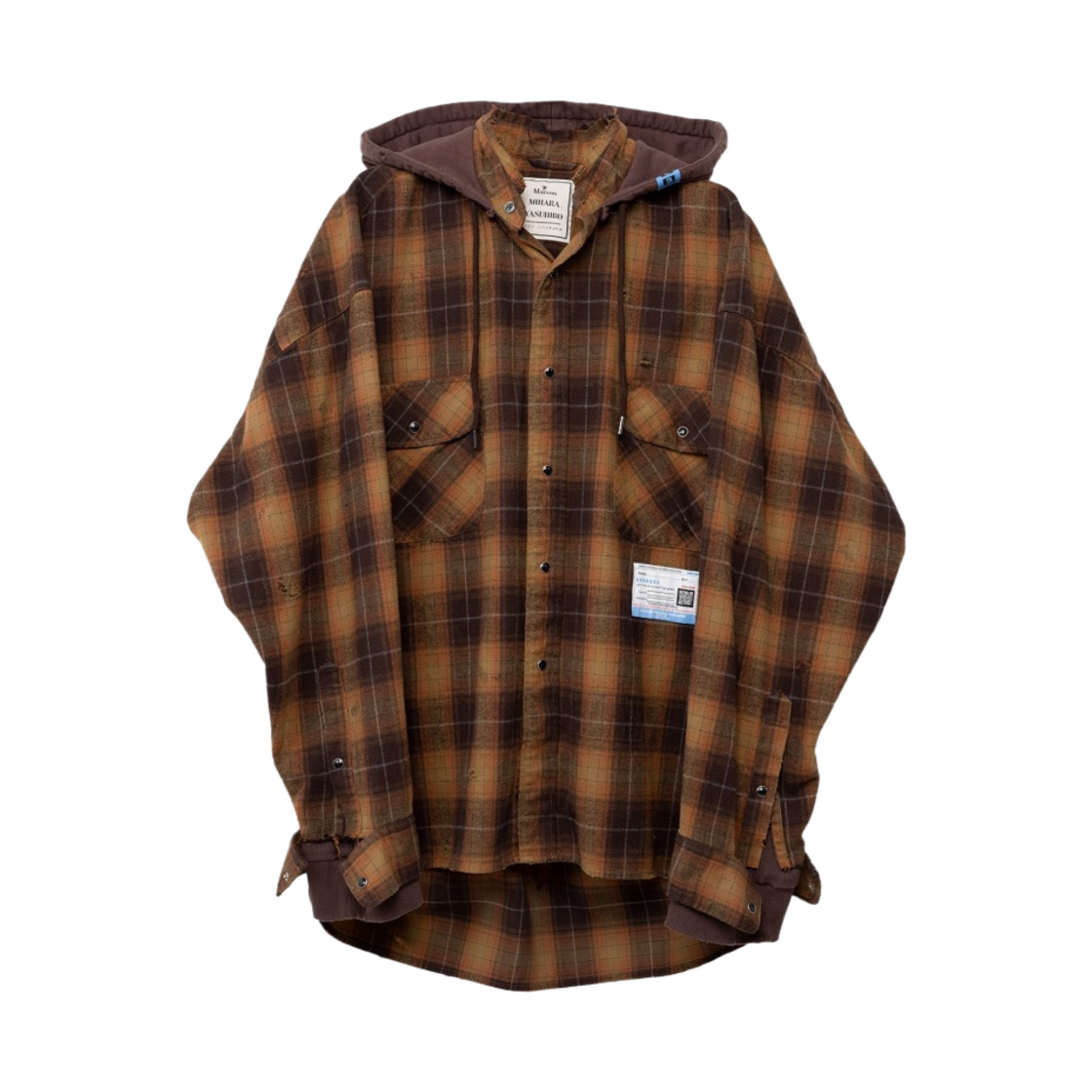 메종 미하라 야스히로 후드 체크 셔츠 블랙