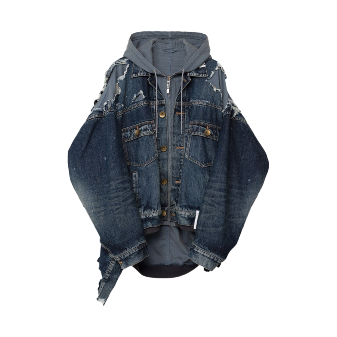메종 미하라 야스히로 레이어드 데님 후드 자켓 인디고