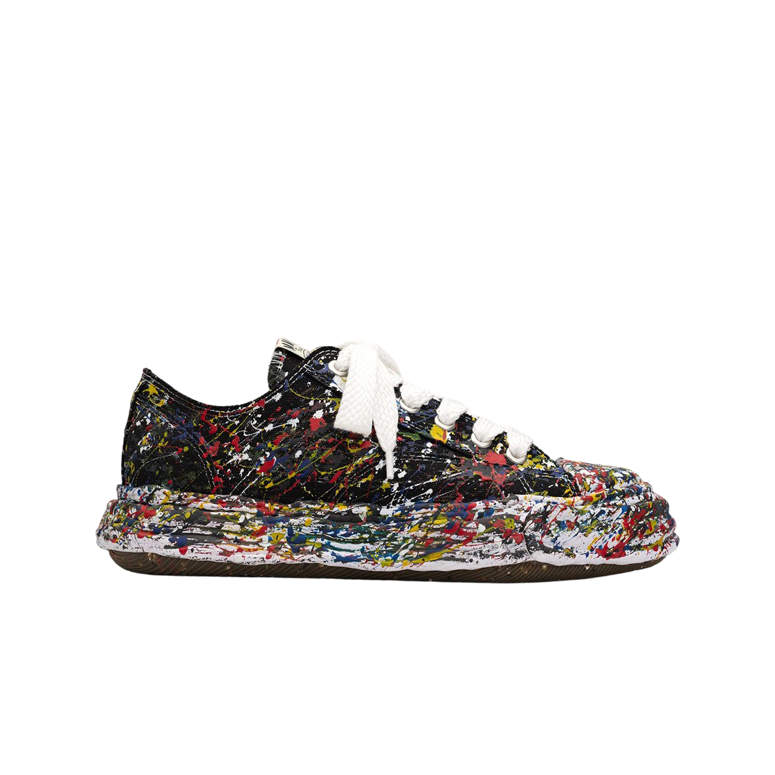 메종 미하라 야스히로 피터슨23 OG 솔 스퍼터링 페인트 캔버스 로우탑 스니커즈 블랙