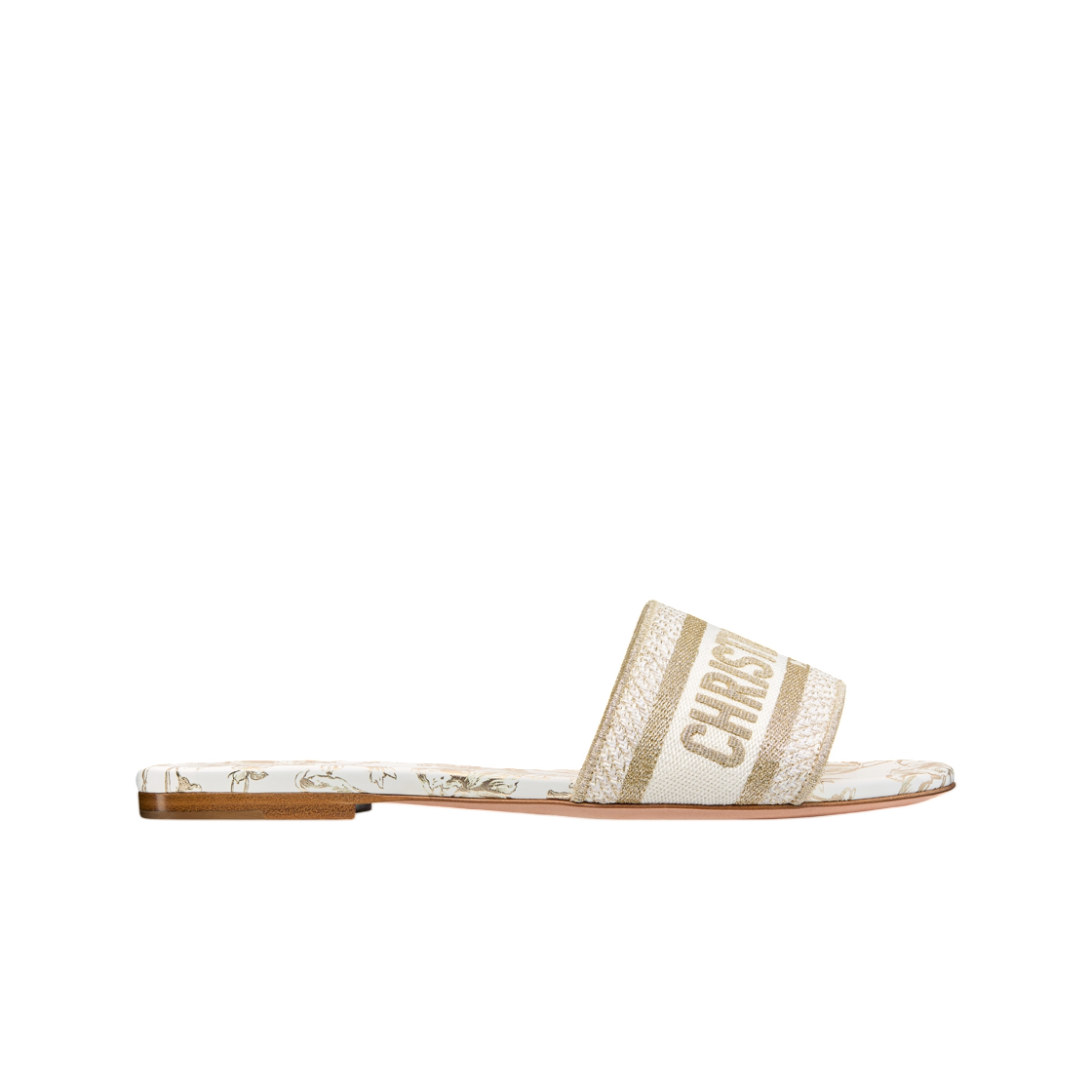 (W) 디올 디웨이 슬라이드 코튼 자수 메탈릭 쓰레드 앤 밀레피오리 모티프 화이트 골드