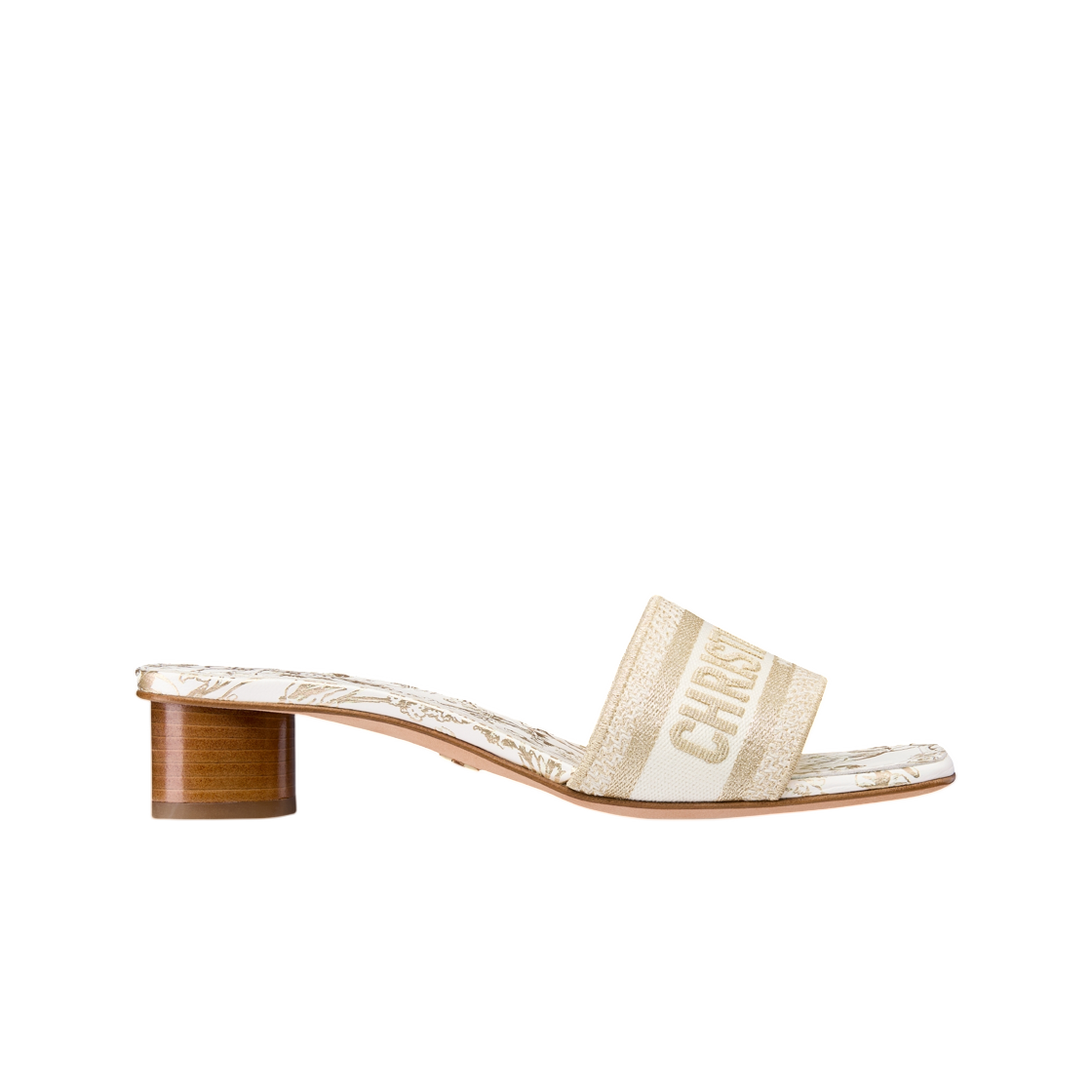 (W) 디올 디웨이 힐 슬라이드 코튼 자수 메탈릭 쓰레드 앤 밀레피오리 모티프 화이트 골드