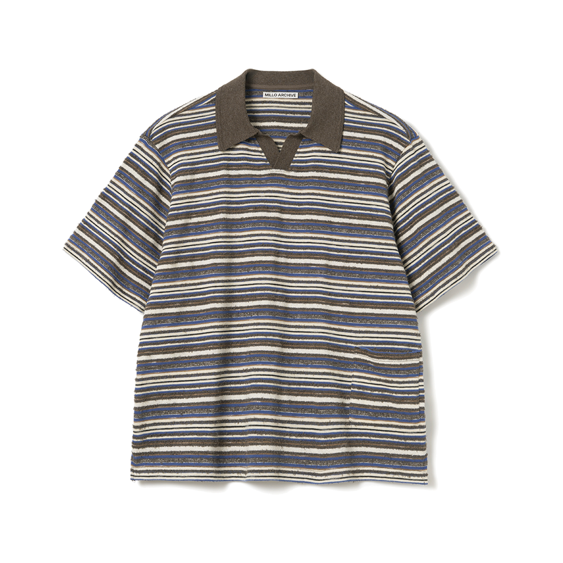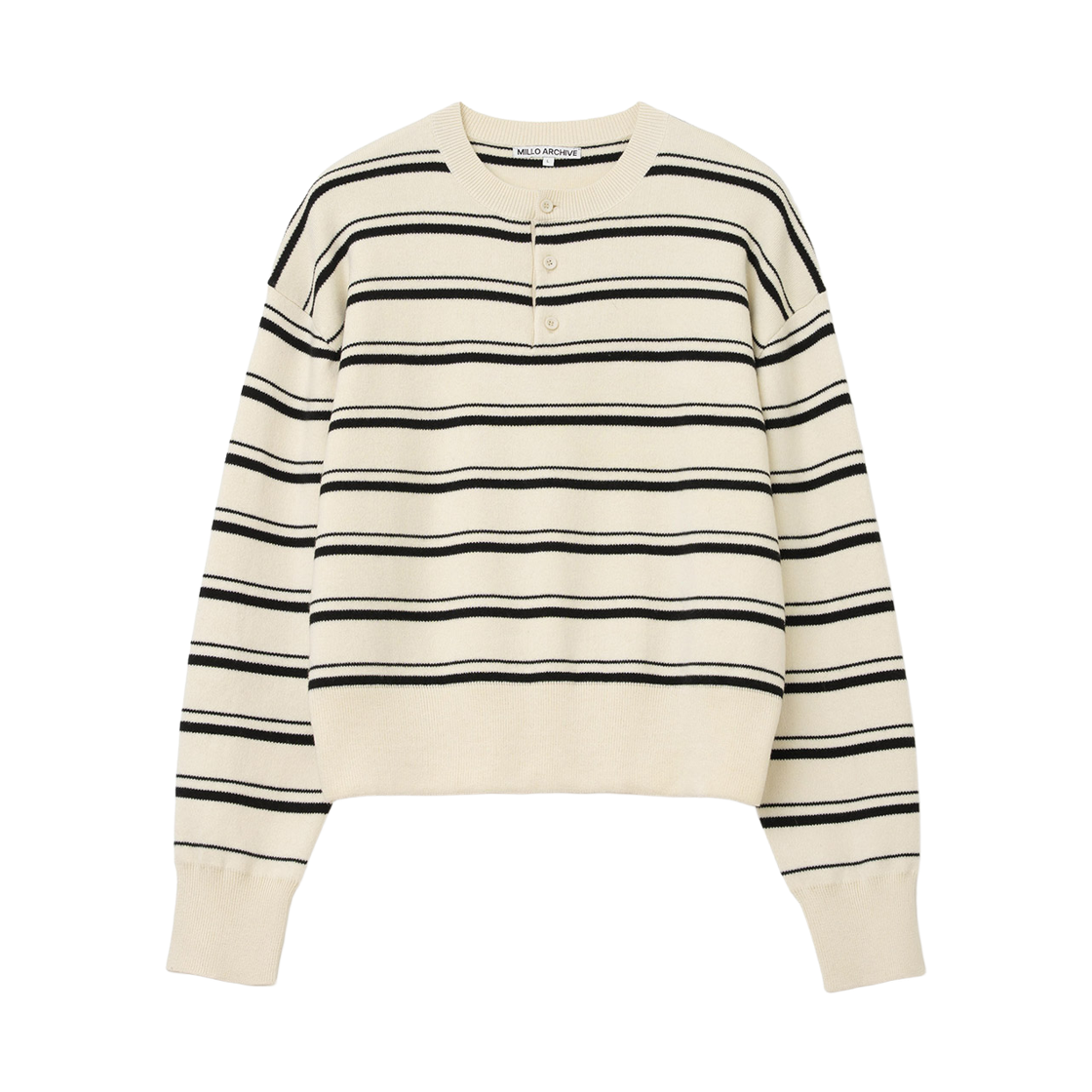 밀로 아카이브 퍼즈 스트라이프 헨리넥 니트 아이보리