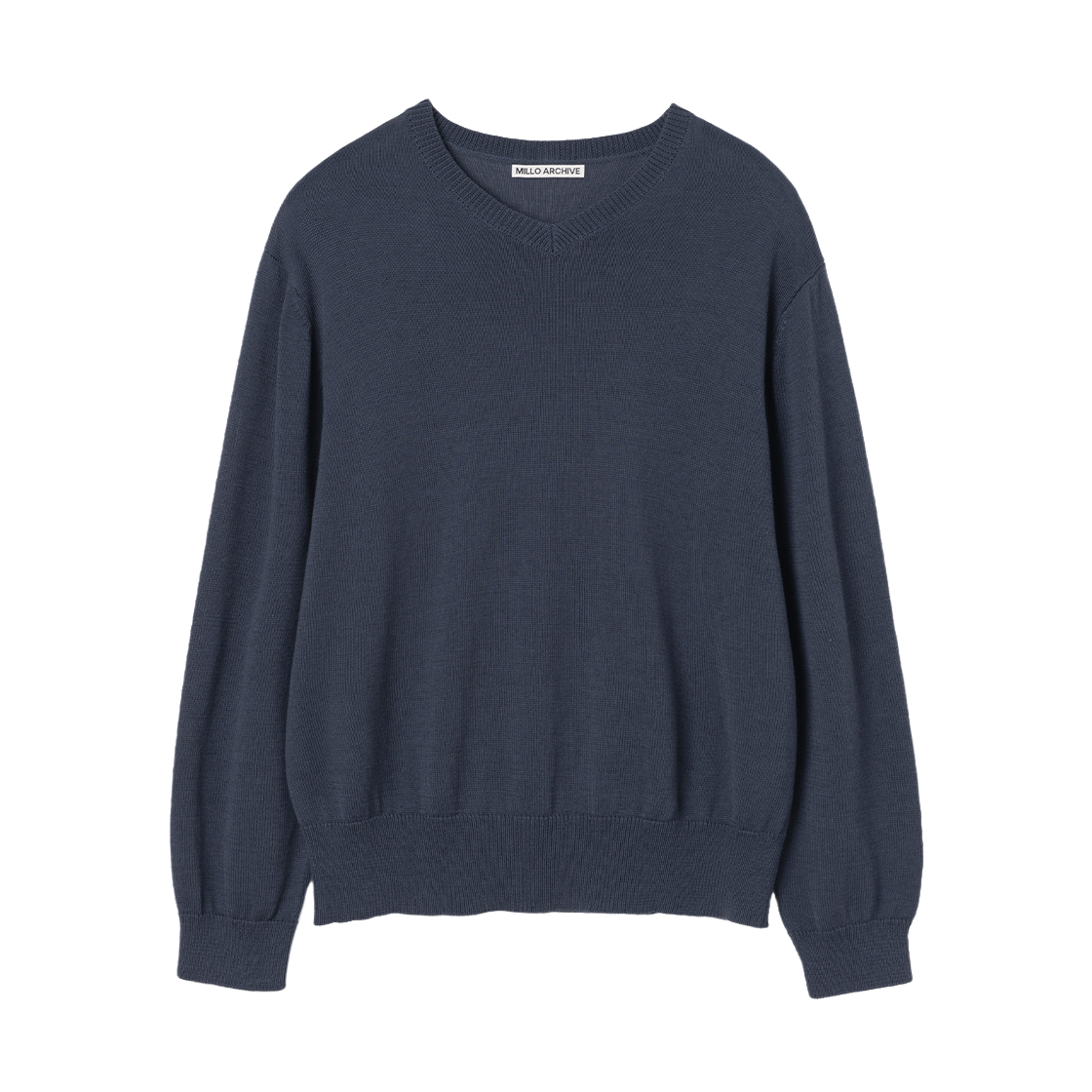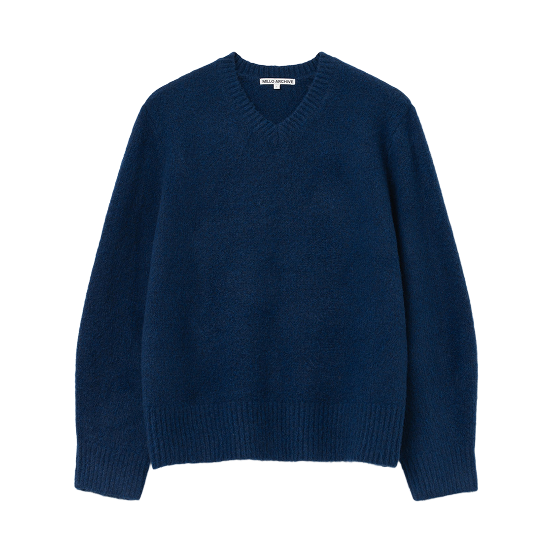 밀로 아카이브 크롭 실루엣 브이넥 니트 딥 블루