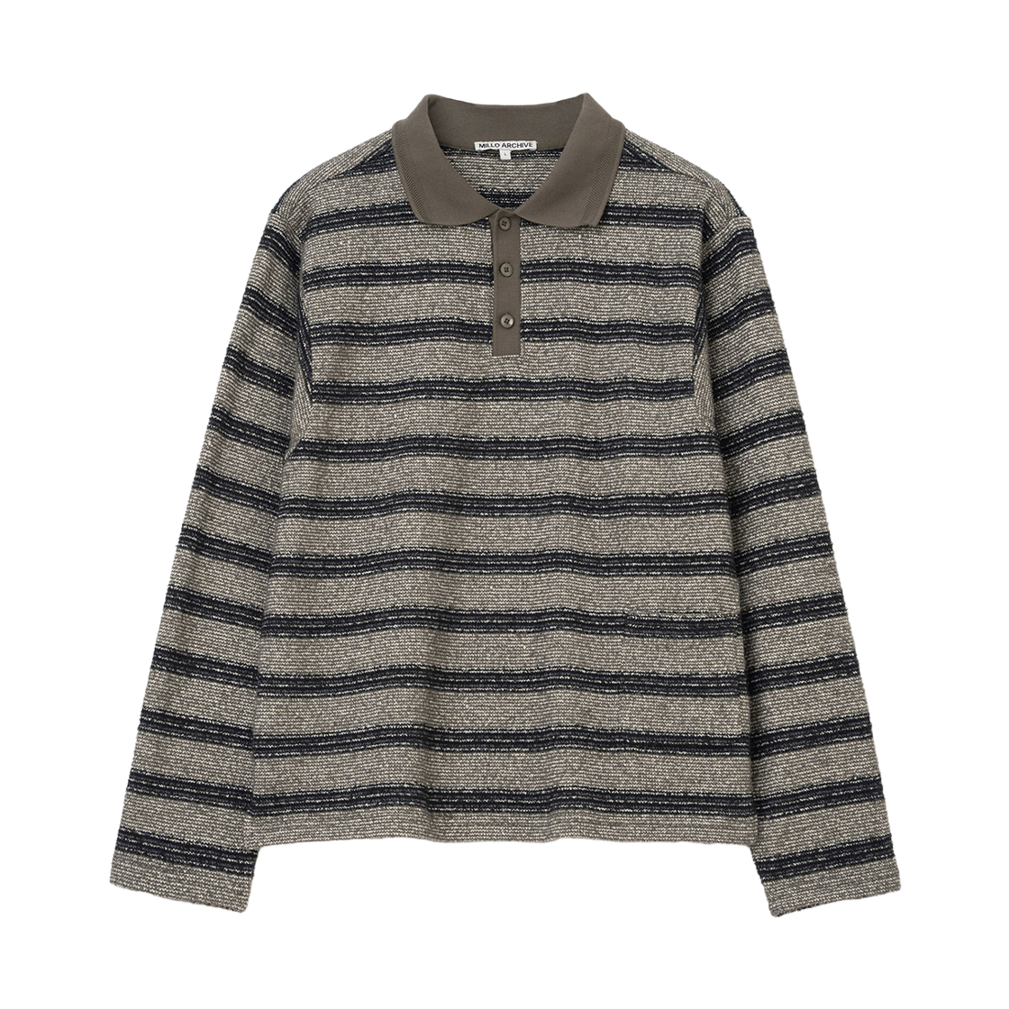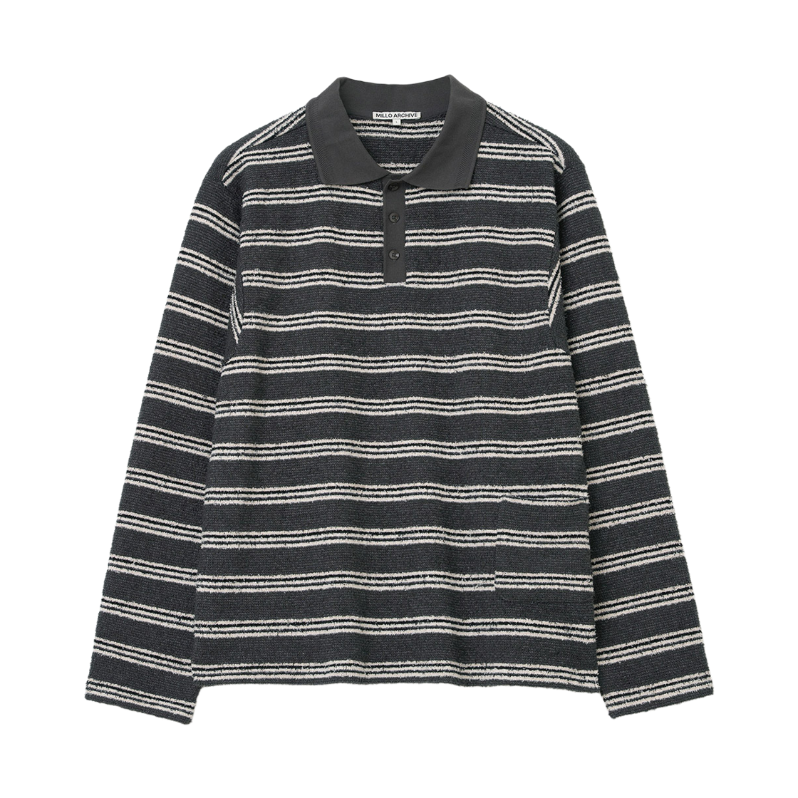 밀로 아카이브 퍼즈 스트라이프 헨리넥 니트 차콜