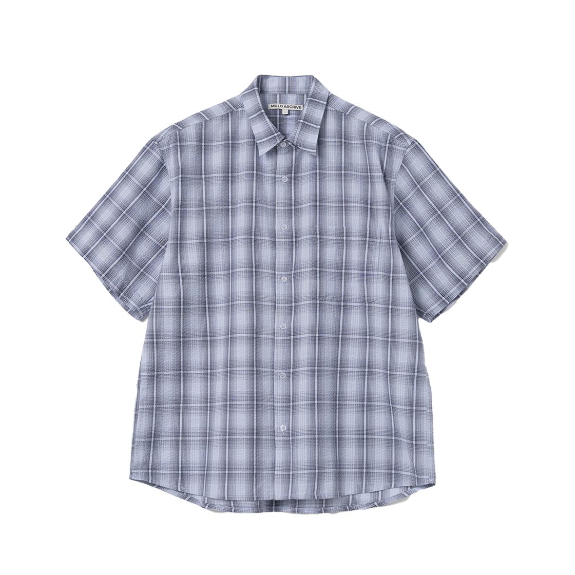 밀로 아카이브 링클 체크 롤업 하프 셔츠 빈티지 블루