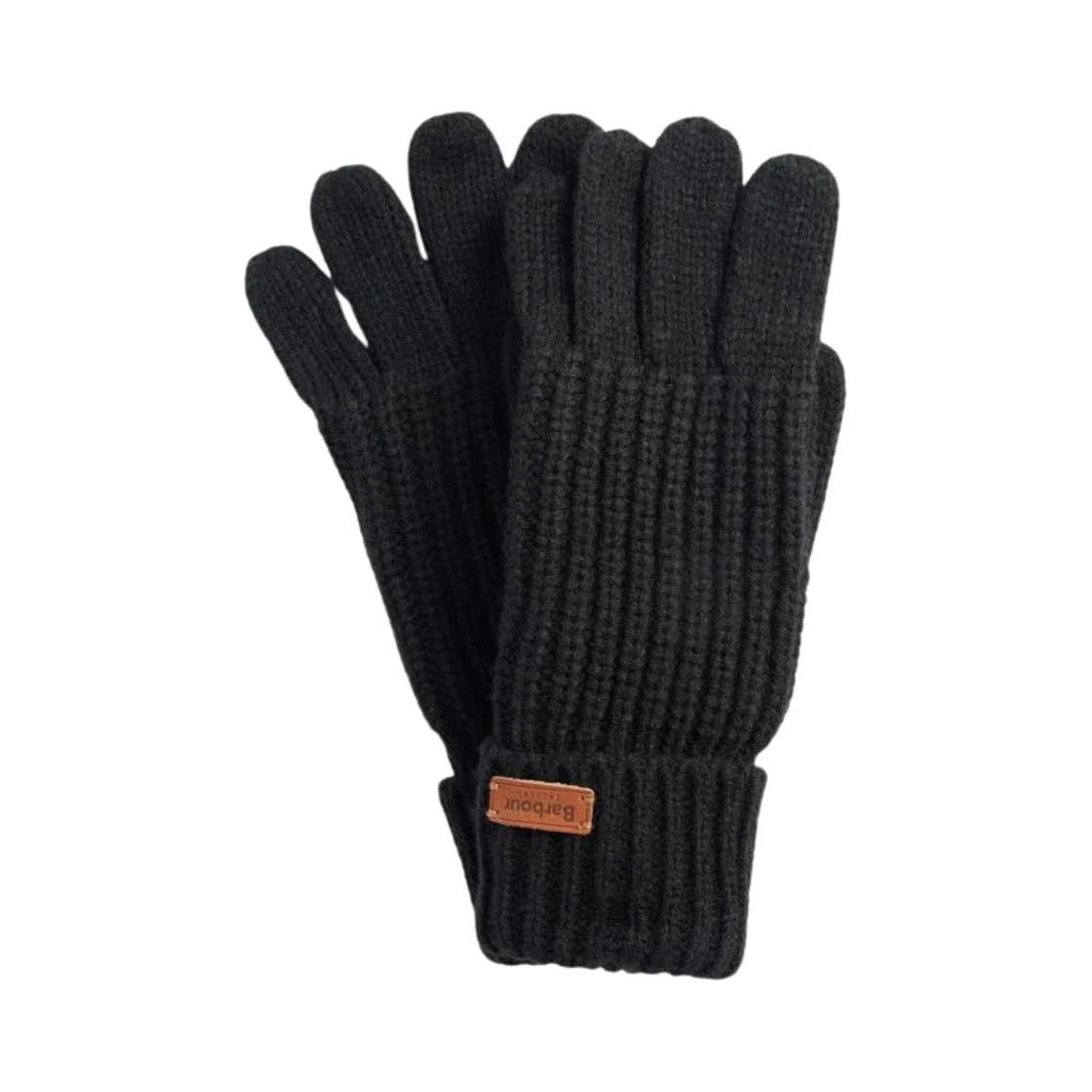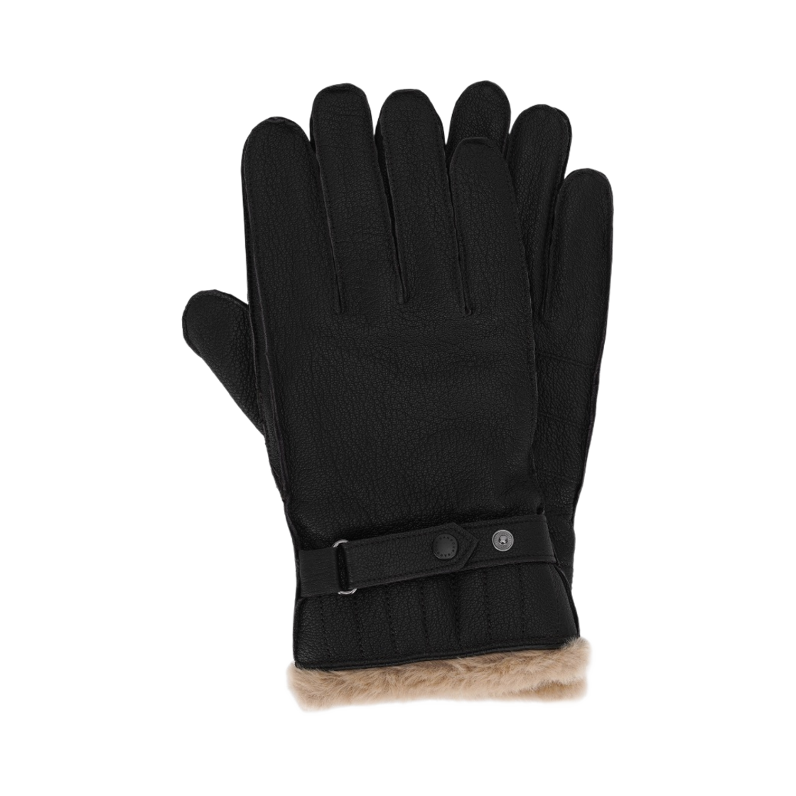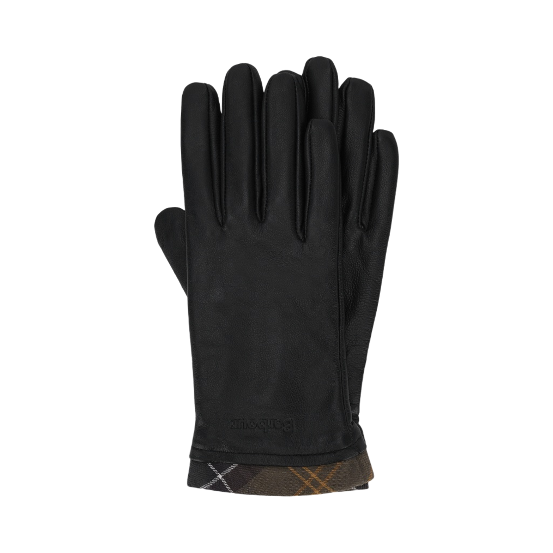(W) 바버 타탄 패턴 트림 레더 글러브 블랙