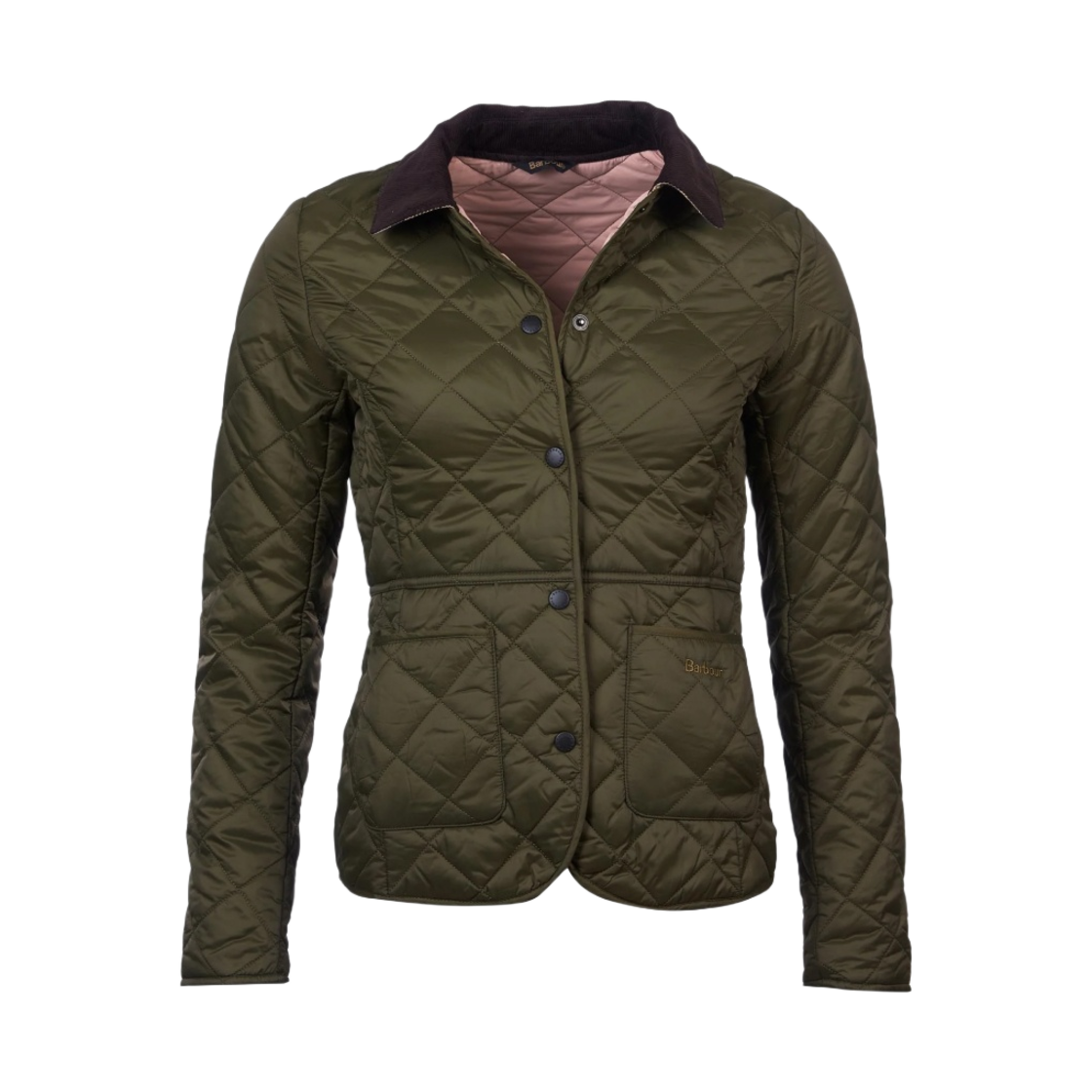 (W) 바버 데브론 퀼티드 자켓 올리브 페일 핑크