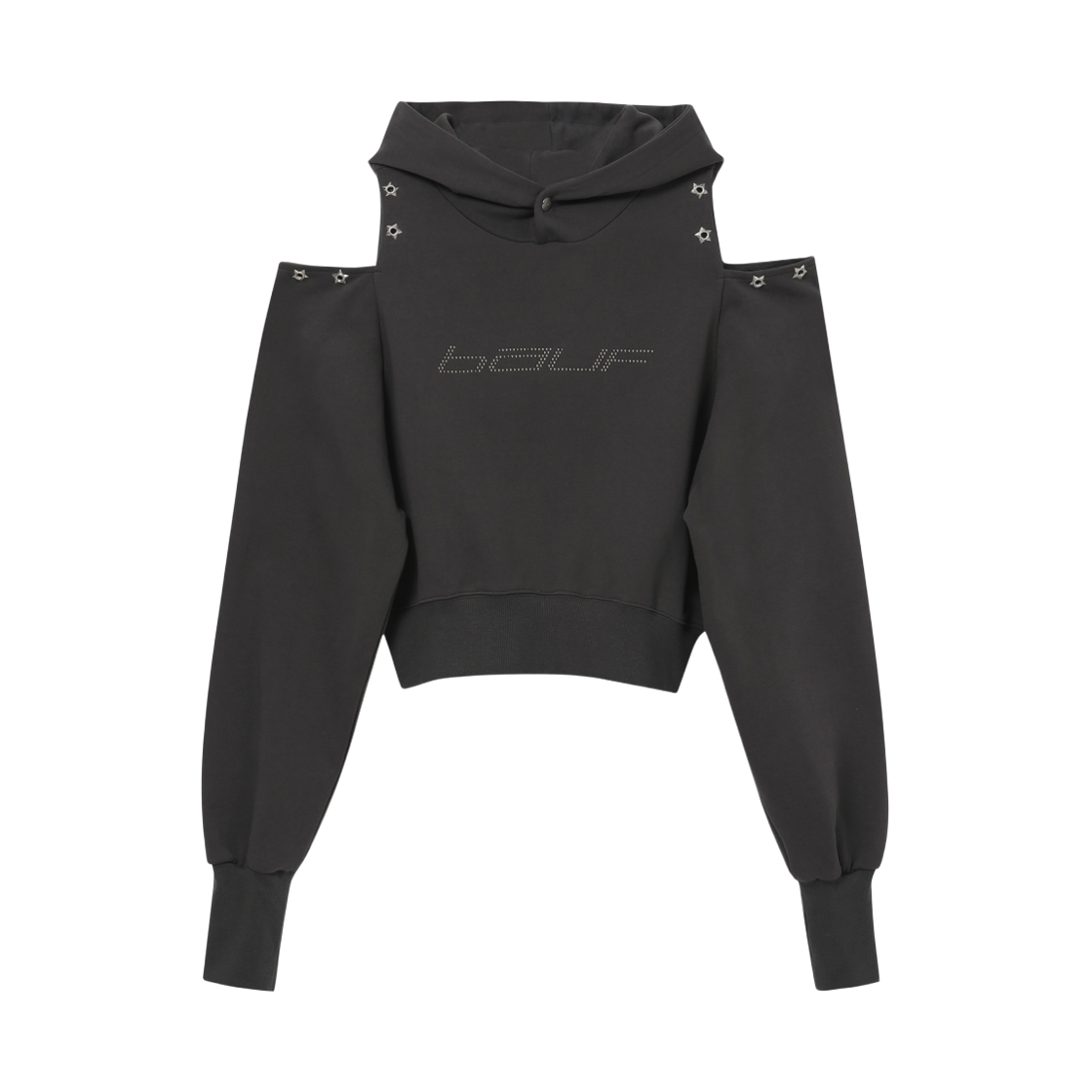 바우프 컷아웃 오프 숄더 크롭드 후드 차콜