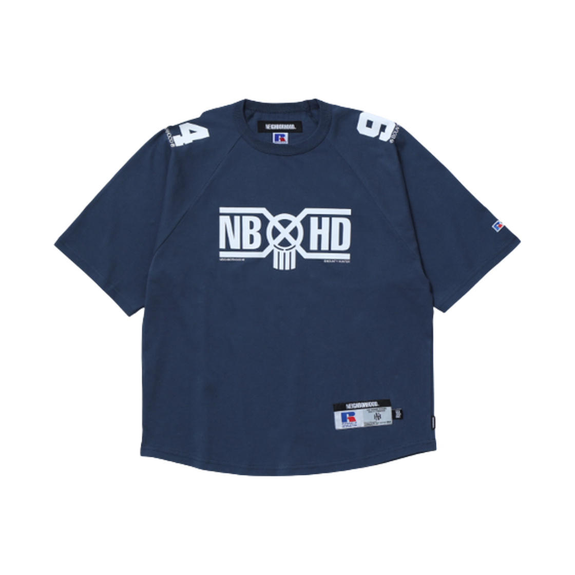 네이버후드 x 바운티 헌터 x 러셀 애슬레틱 크루넥 숏슬리브 티셔츠 네이비