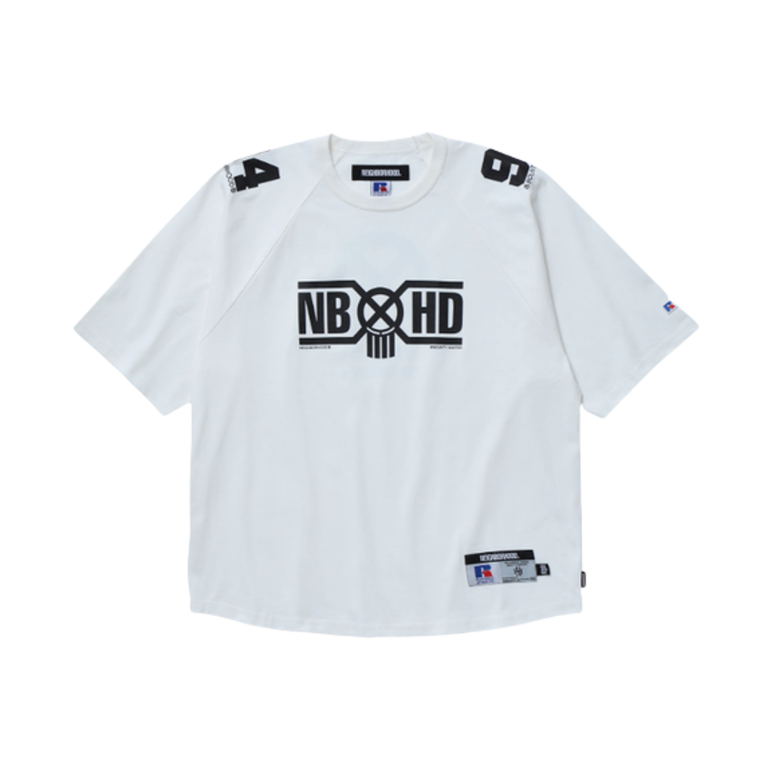 네이버후드 x 바운티 헌터 x 러셀 애슬레틱 크루넥 숏슬리브 티셔츠 화이트