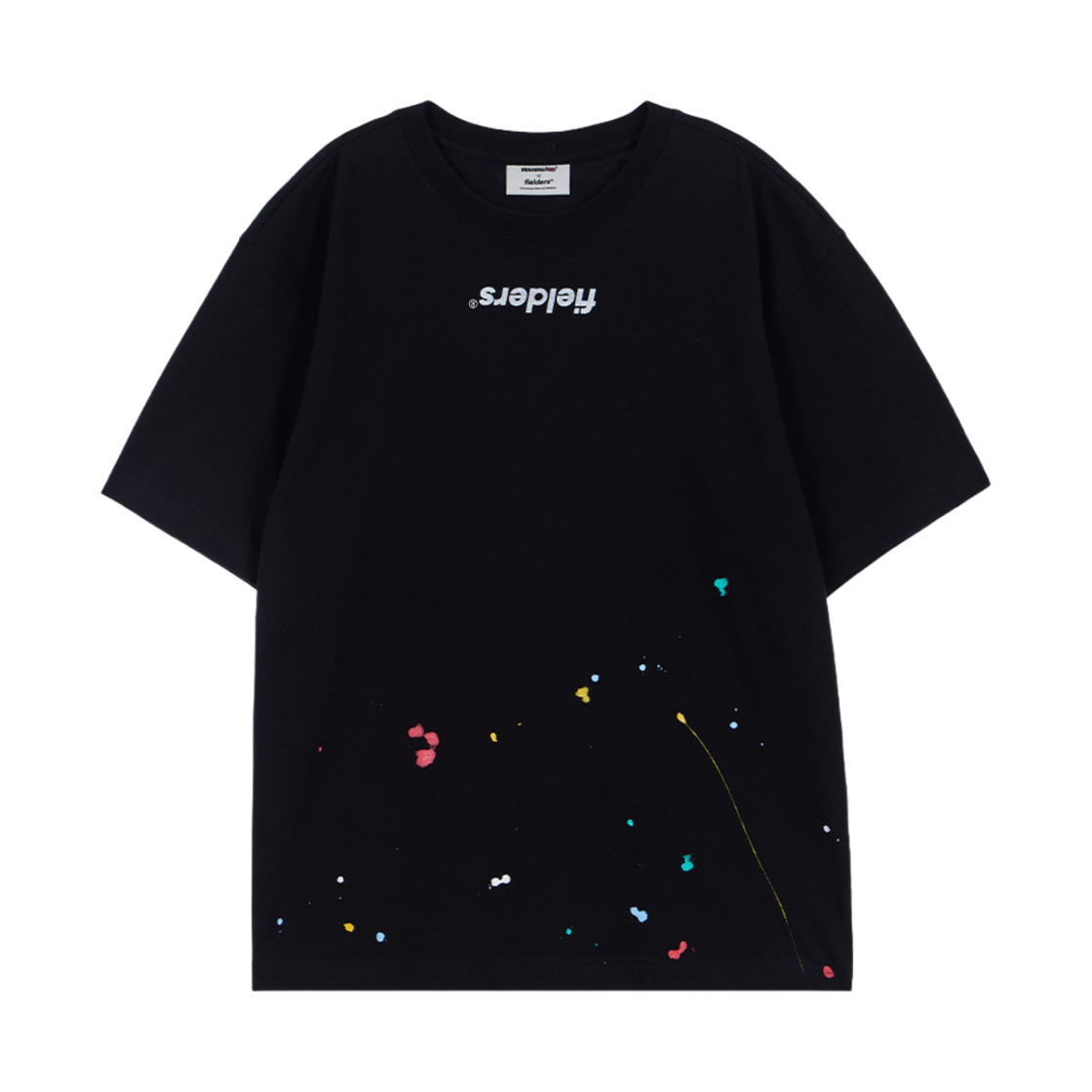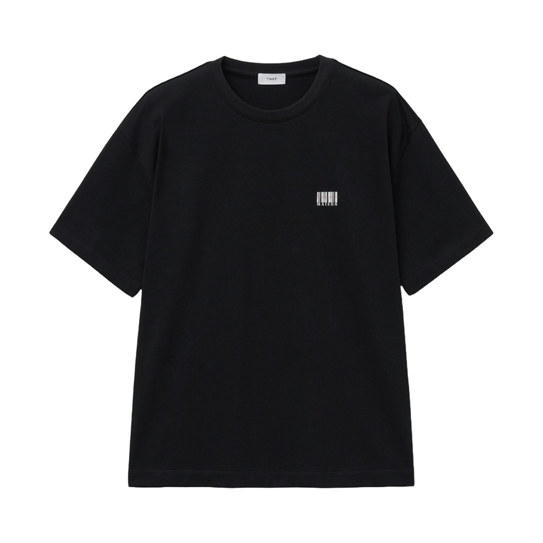 티엔지티 블랙 세미오버핏 바코드 스몰로고 티셔츠