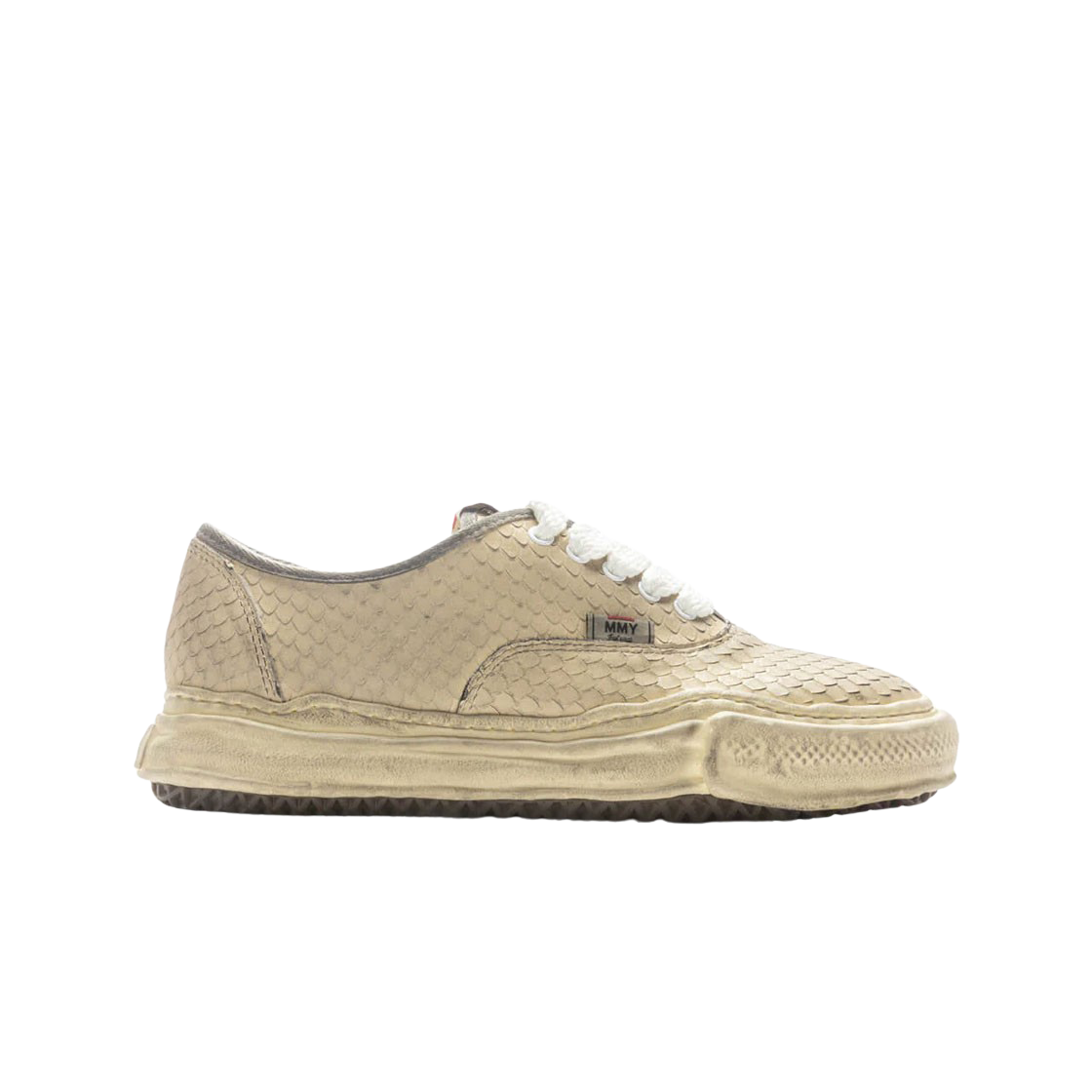 메종 미하라 야스히로 베이커 OG 솔 디스트레스 레더 로우탑 스니커즈 화이트