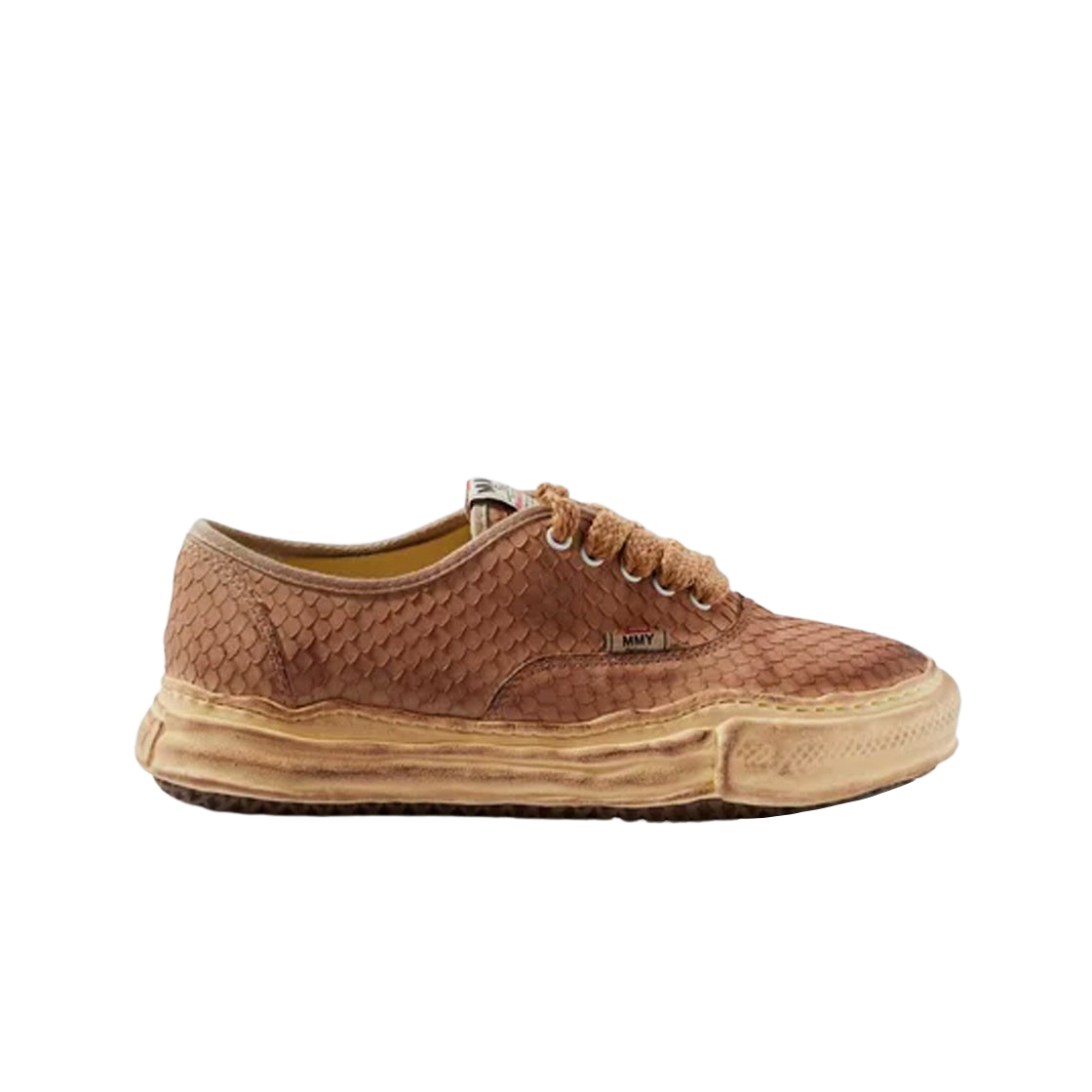 메종 미하라 야스히로 베이커 OG 솔 디스트레스 레더 로우탑 스니커즈 브라운