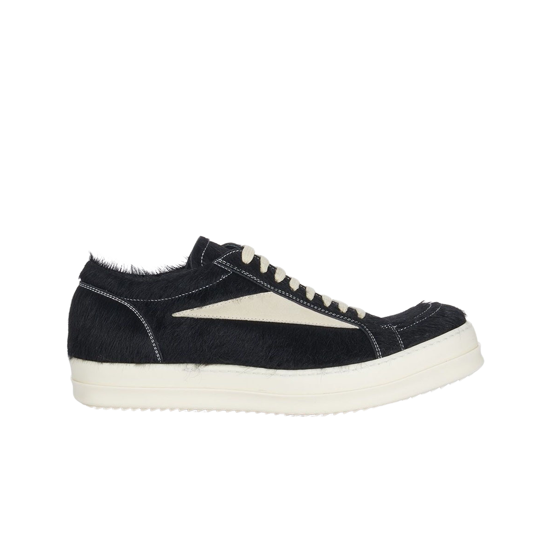 릭 오웬스 리도 런웨이 빈티지 스니커즈 인 언쉐이브드 카우 레더 앤드 벨루어 스웨이드 블랙 밀크