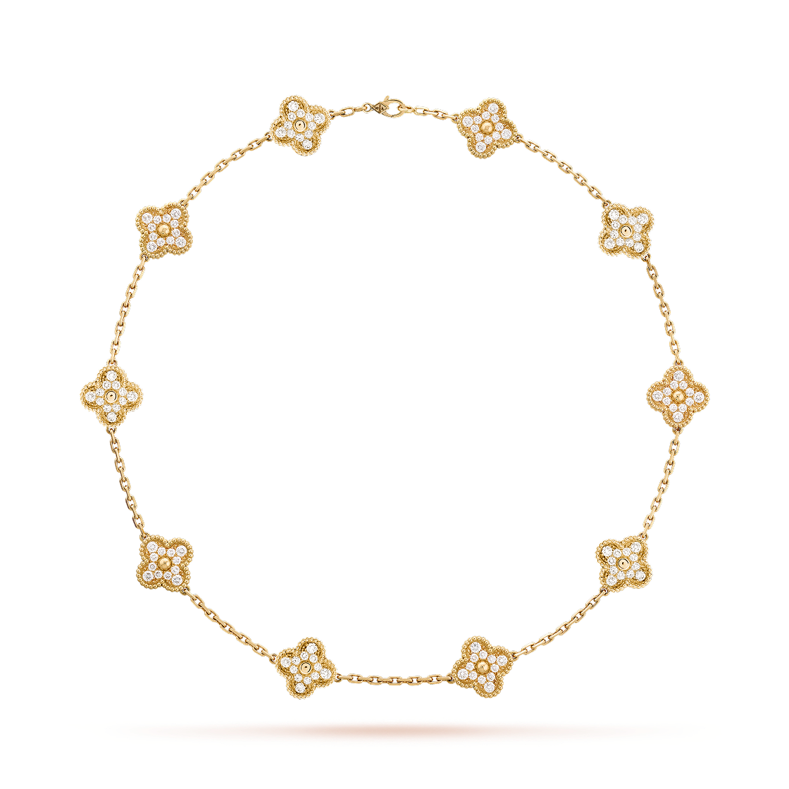 반 클리프 & 아펠 빈티지 알함브라 네클리스 10 모티브 18K 옐로우 골드 다이아몬드