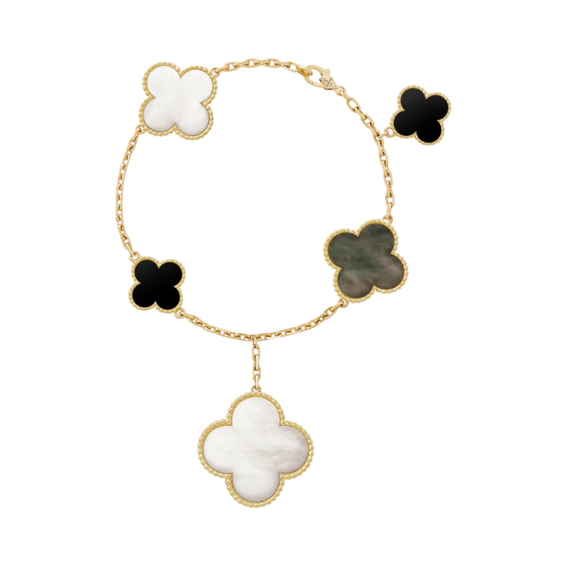 (W) 반 클리프 & 아펠 매직 알함브라 브레이슬릿 5 모티브 옐로우 골드 마더 오브 펄 오닉스