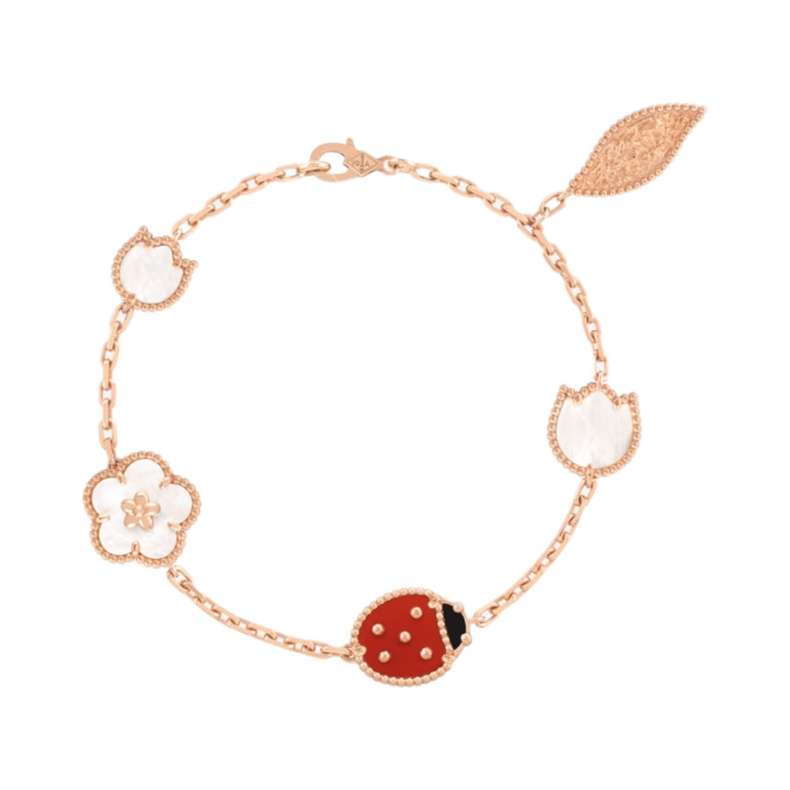 (W) 반 클리프 & 아펠 럭키 스프링 브레이슬릿 날개를 접은 무당벌레 핑크 골드 오닉스 커넬리언