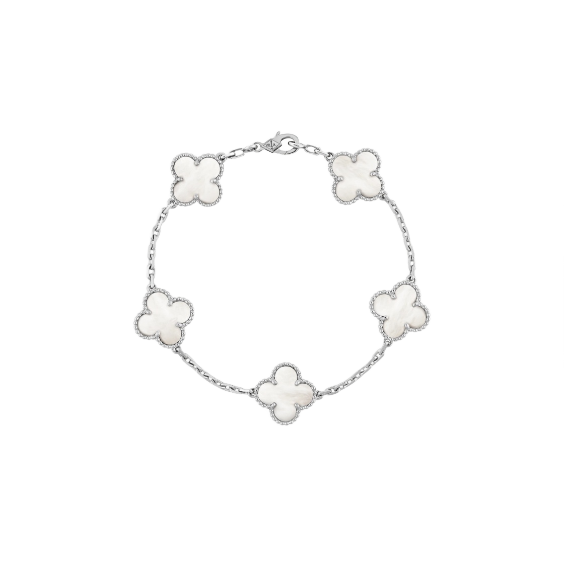 (W) 반 클리프 & 아펠 빈티지 알함브라 브레이슬릿 5 모티브 화이트 골드 마더 오브 펄