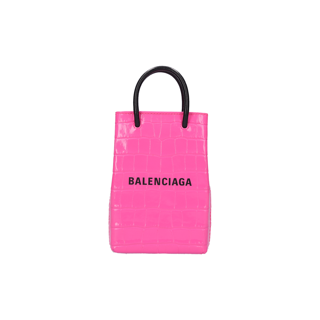 발렌시아가 593826 크로커다일 엠보스 미니 쇼핑백 폰 홀더 핑크