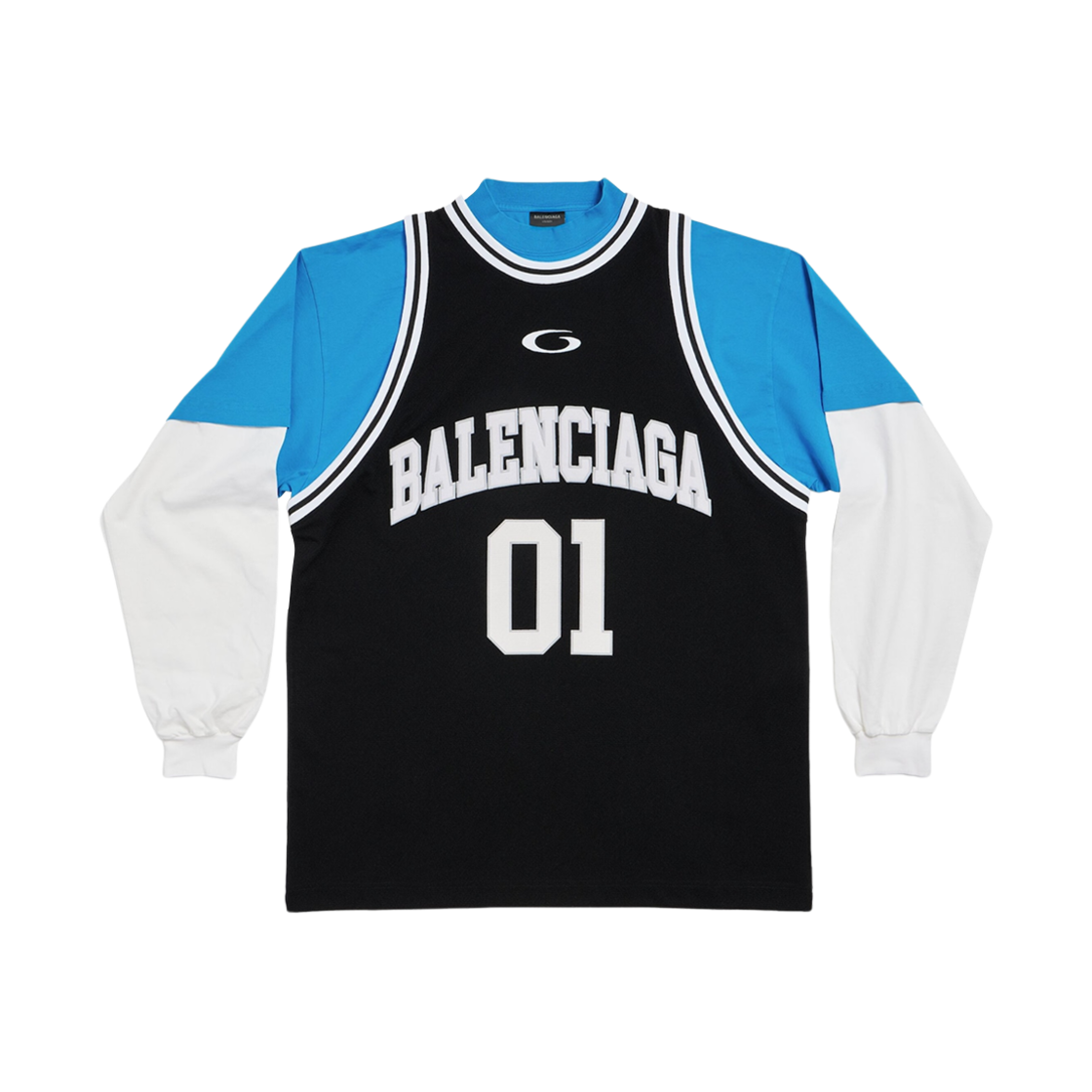 발렌시아가 바스켓볼 시리즈 레이어드 롱슬리브 티셔츠 블랙 화이트