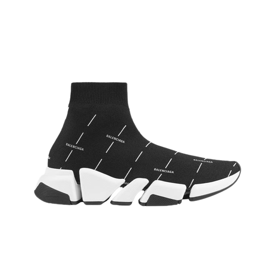 (W) 발렌시아가 스피드 2.0 트레이너 올 오버 로고 스트라이프 블랙 니트 화이트 솔 2021