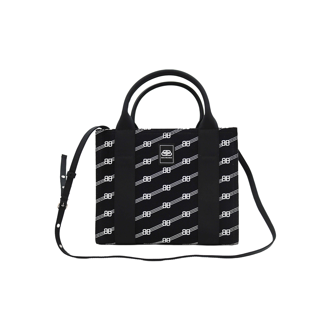 발렌시아가 550645 블랙 빌 탑 핸들 로고 프린팅 스몰 토트백, 스트랩