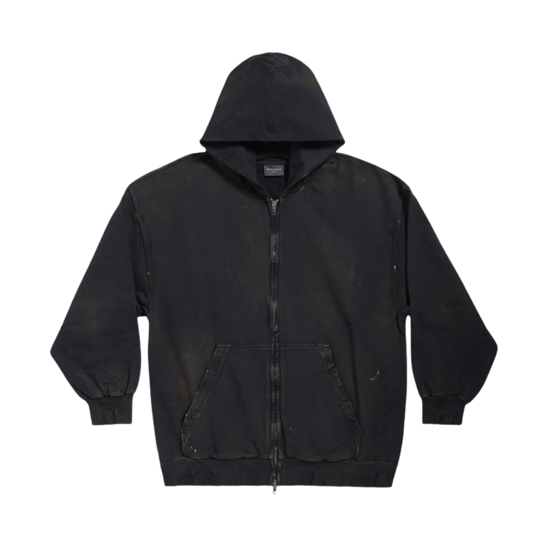 발렌시아가 헤비 메탈 집업 후드 스몰 핏 블랙 페이디드