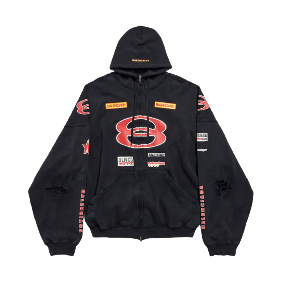 발렌시아가 유니폼 패치 집업 후드 라지 핏 블랙 페이디드