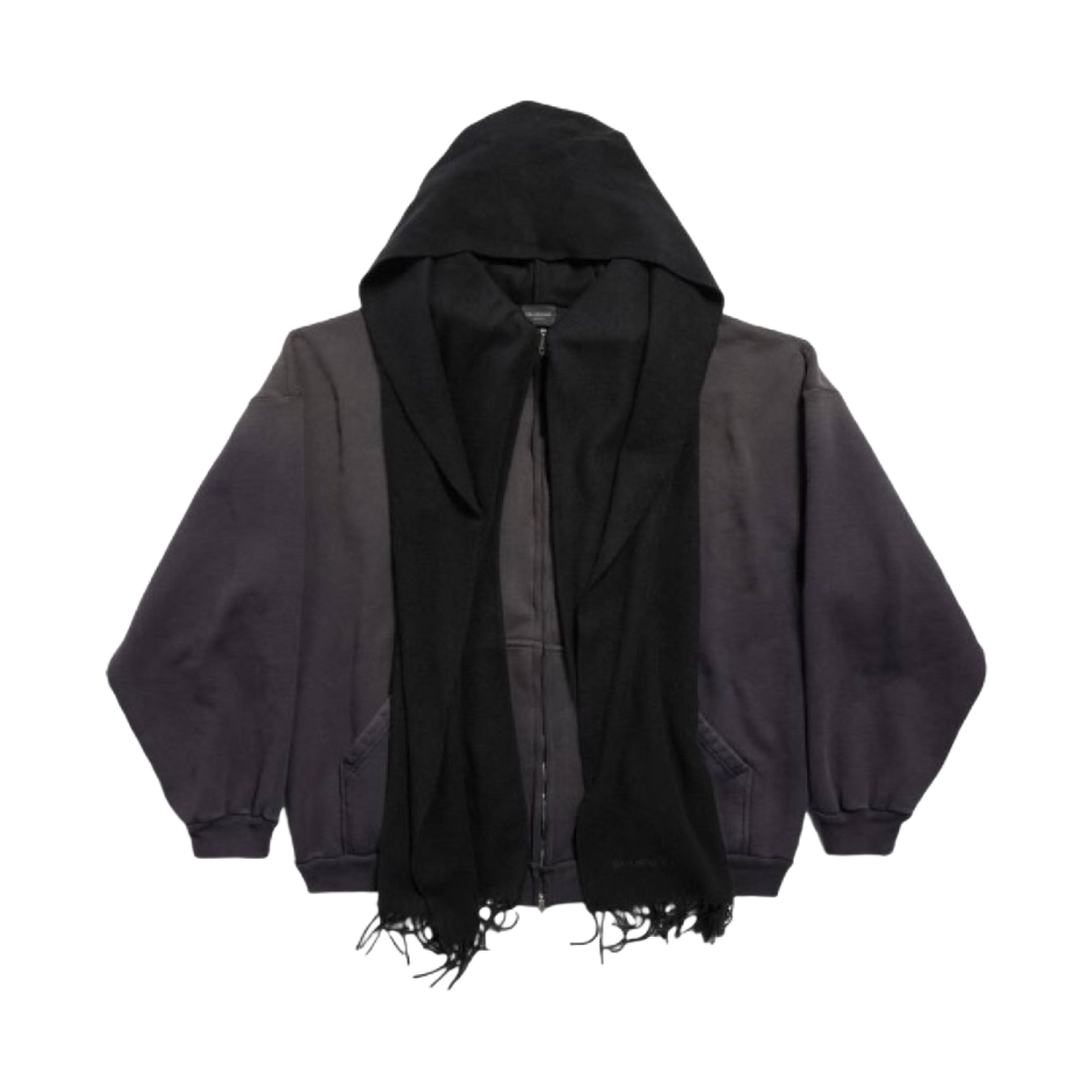 발렌시아가 스카프 코튼 집업 후드 페이디드 블랙