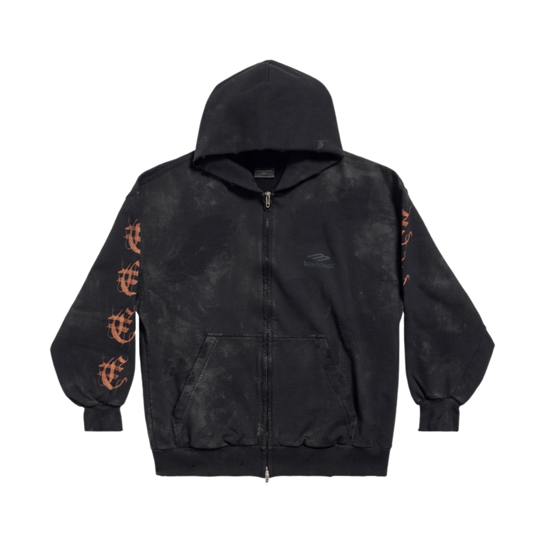 발렌시아가 블랙레터 스크립트 풀드 집업 후드 라지 핏 블랙 페이디드