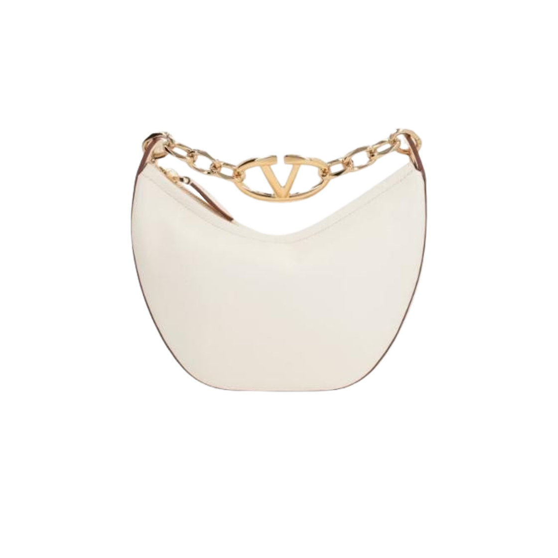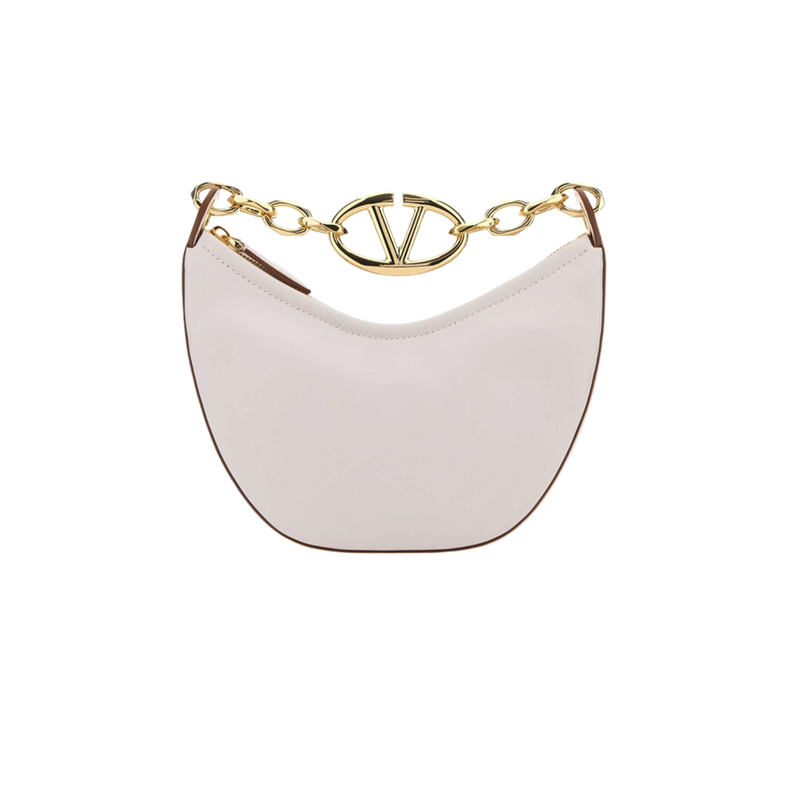 발렌티노 미니 브이로고 시그니쳐 그레이니 카프스킨 호보백 라이트 아이보리