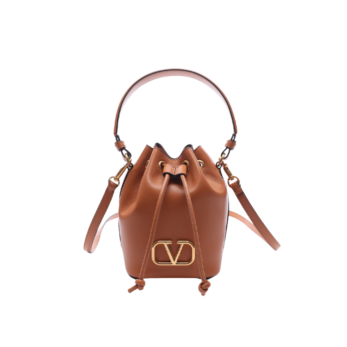 발렌티노 나파 레더 브이로고 시그니쳐 미니 버킷백 카멜