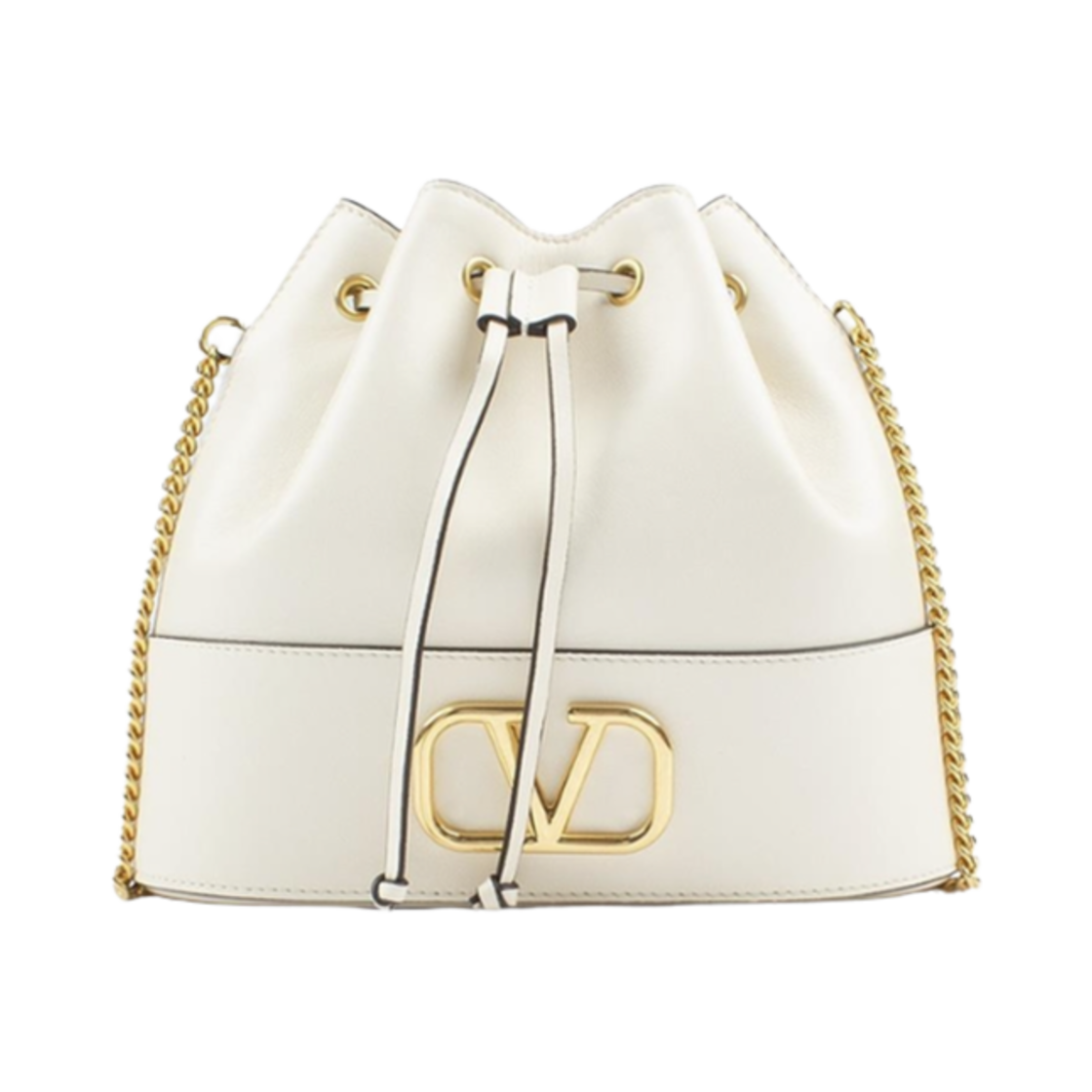발렌티노 브이로고 시그니쳐 나파 체인 미니 버킷백 라이트 아이보리
