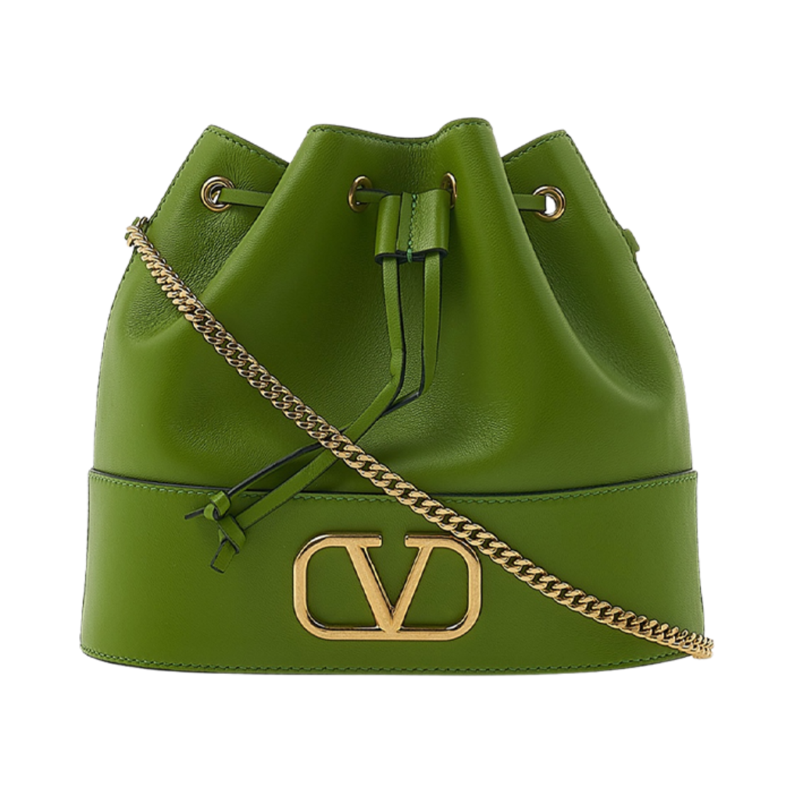 발렌티노 나파 레더 브이로고 시그니쳐 미니 버킷백 그린