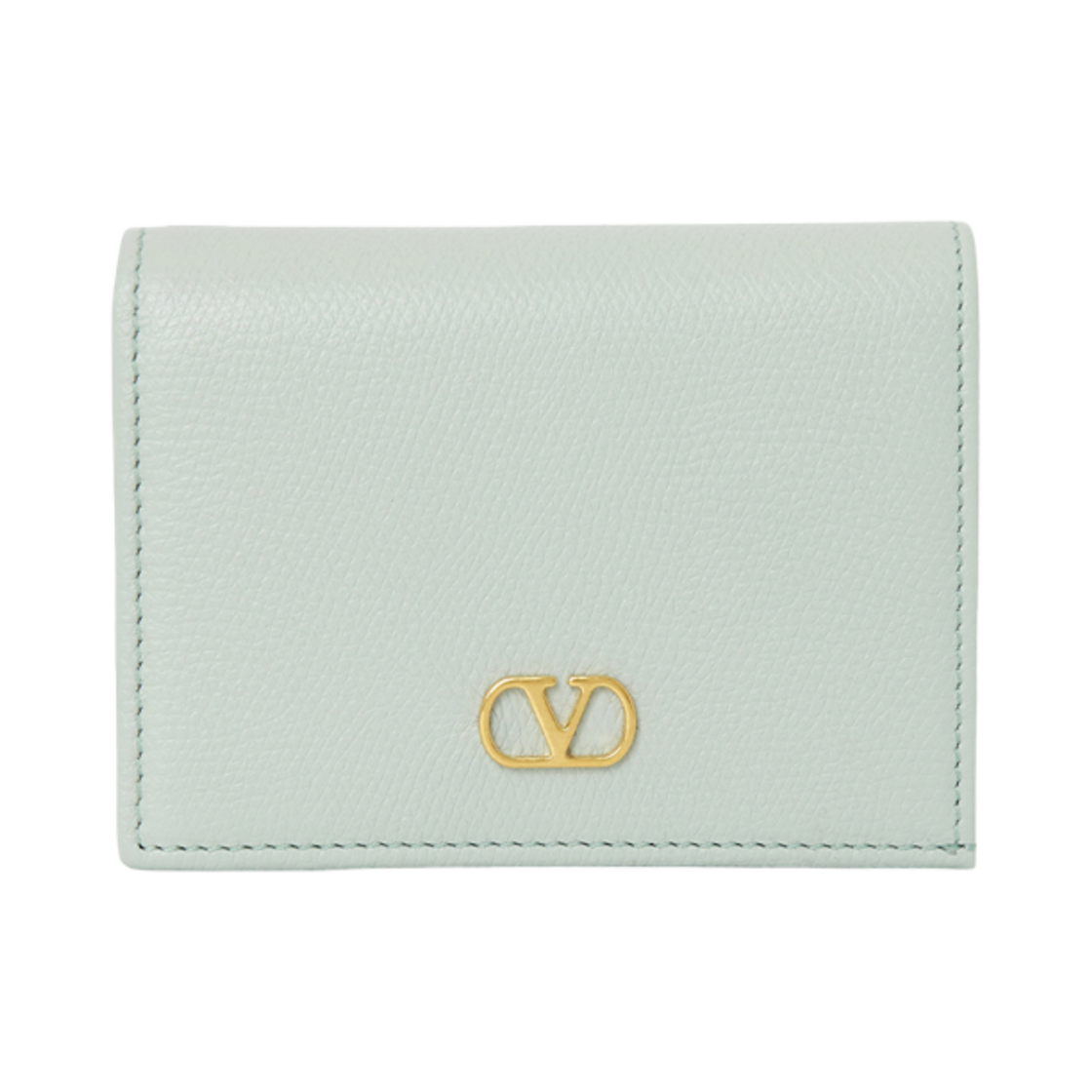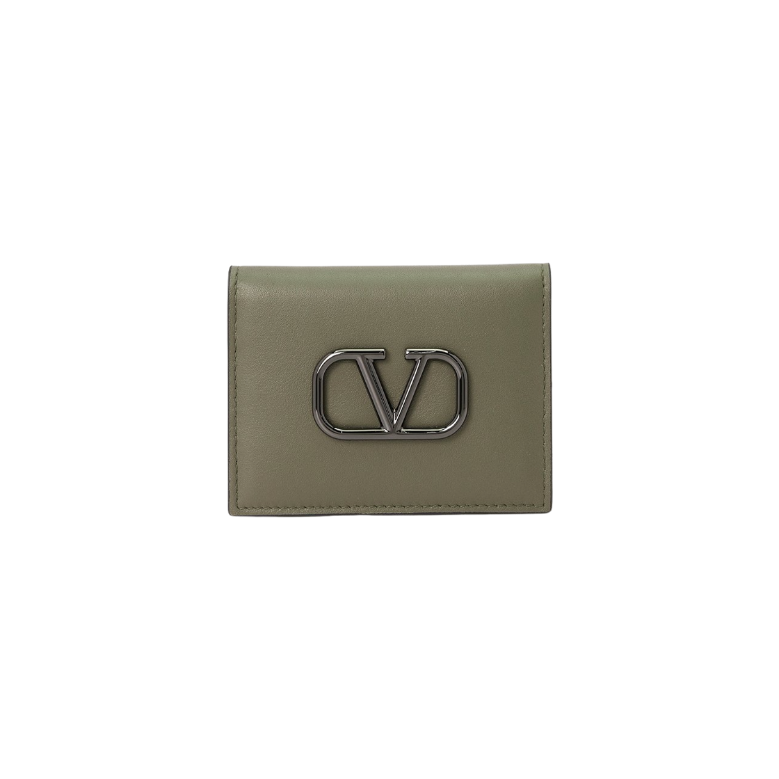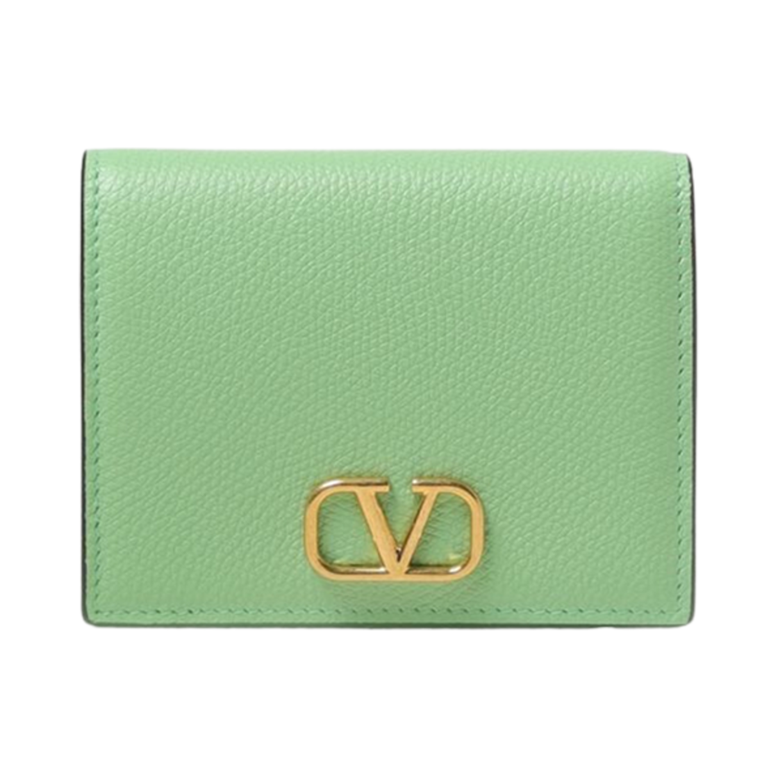 발렌티노 컴팩트 브이로고 시그니쳐 그레이니 카프스킨 월렛 그린