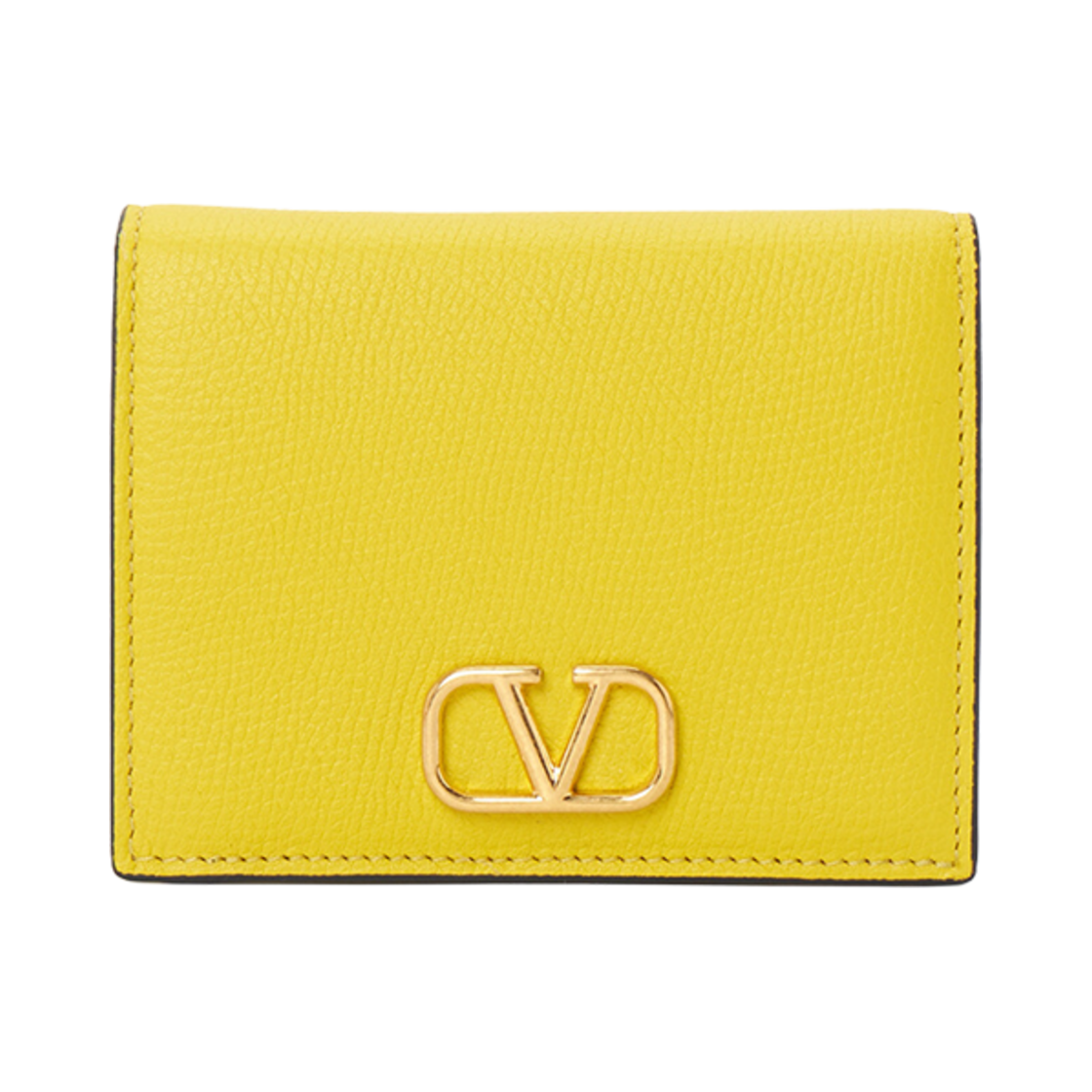 발렌티노 컴팩트 브이로고 시그니쳐 그레이니 카프스킨 월렛 옐로우
