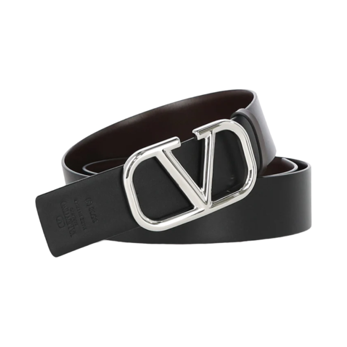 발렌티노 브이로고 시그니쳐 레더 벨트 비터 초콜릿 실버