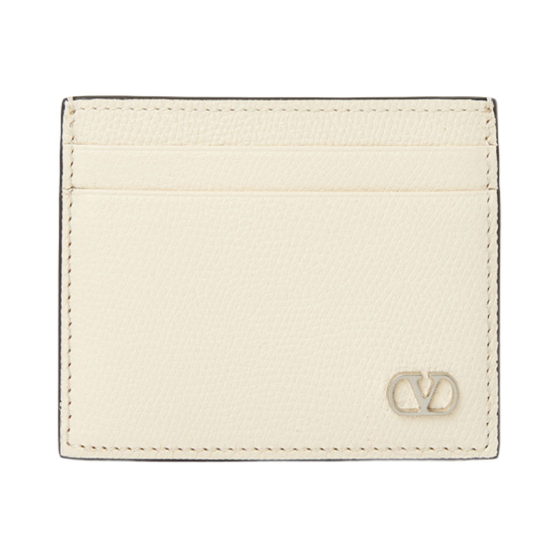 발렌티노 브이로고 시그니쳐 그레이니 카프스킨 카드 홀더 라이트 아이보리